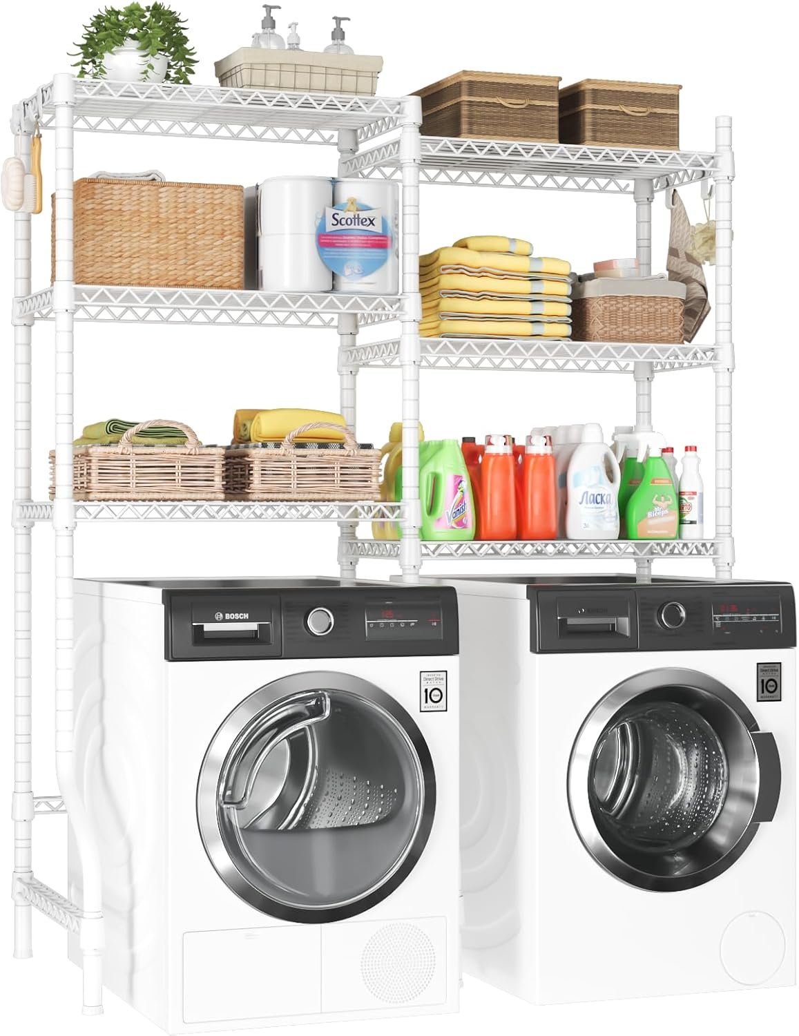 601100 ULIFHOME - U15 Over Washer and Dryer Storage Shelves, Laundry Above Washer Dryer Storage Rack Space Saver, 6-Tier Wire Shelf with 4 Hooks f