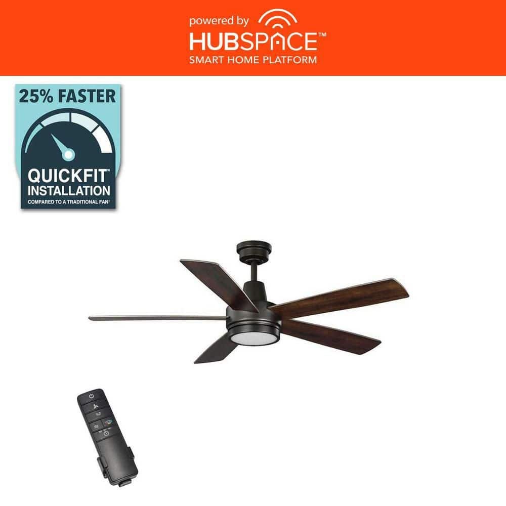 601096 HOME DECORATORS COLLECTION - Merwry 52 in. Integrated LED Indoor Matte Black Ceiling Fan with Light Kit