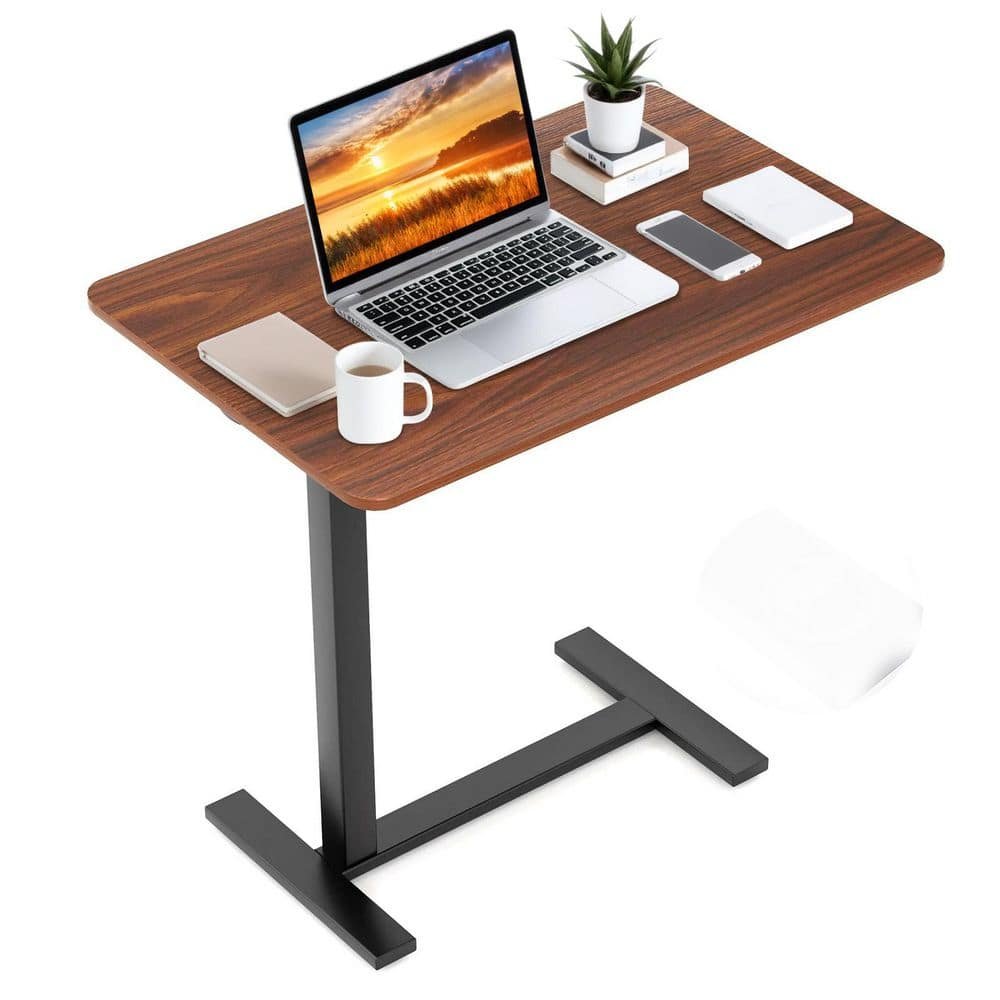 601018 - 82.7 in Aluminum Rectangular Frame Patio Outdoor Dining Table with Wooden-Like Top and Umbrella Hole in Brown