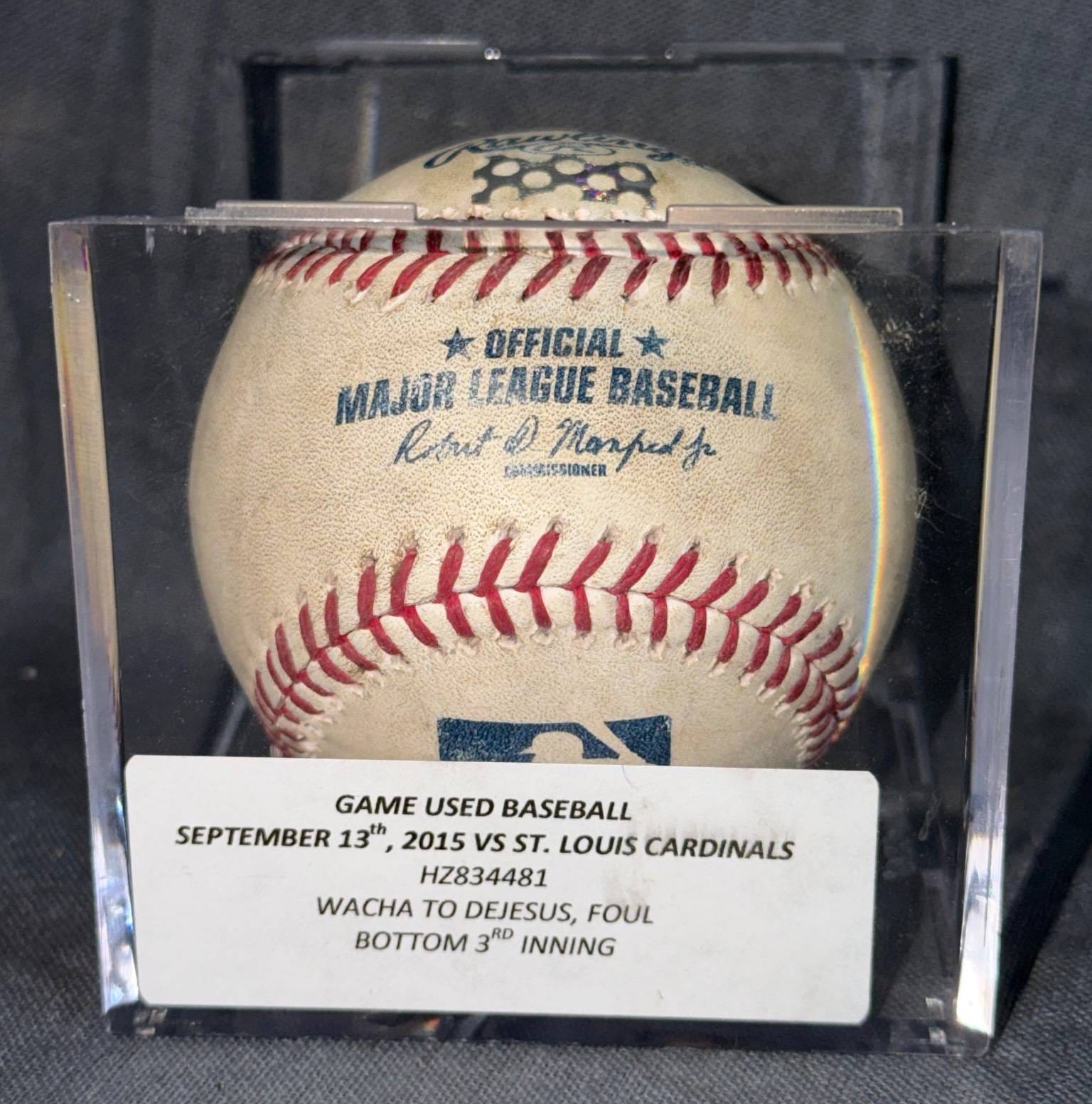 20098 Official MLB Game-Used Baseball, September 13, 2015, Cardinals vs. Wacha Foul