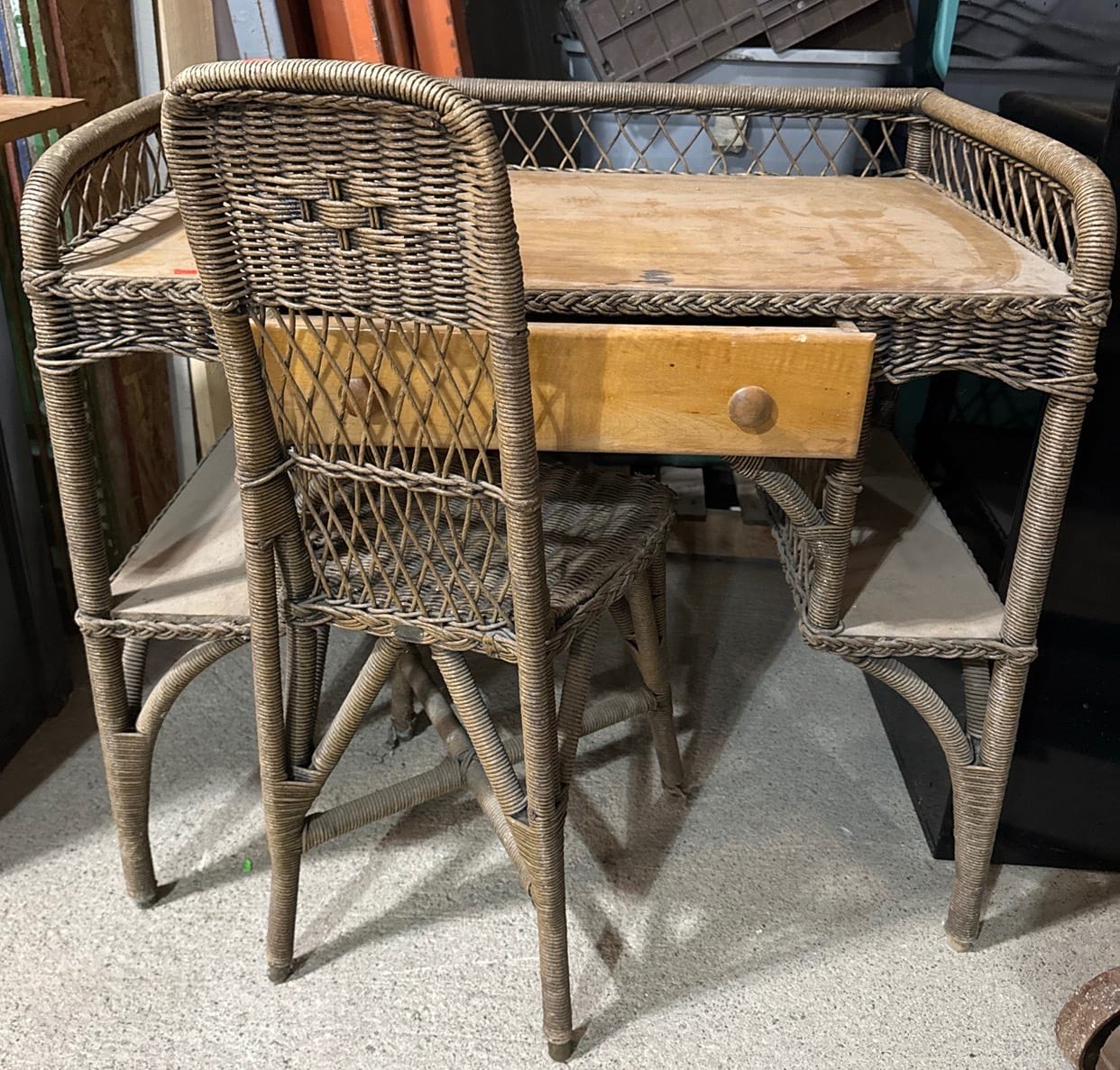 20333 Wicker Desk With Drawer and Matching Chair, 36”x30”x22.5” Desk, 36”x15”x24” Chair
