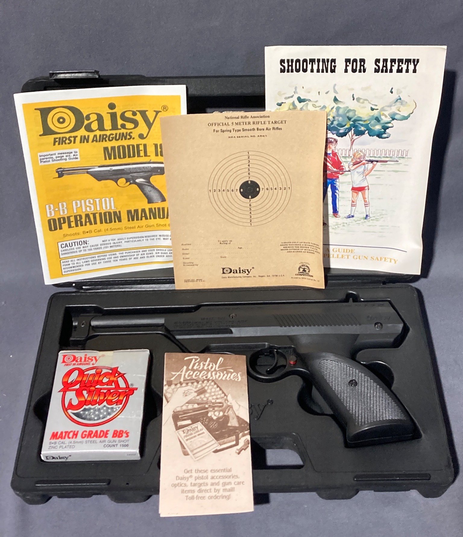 20044 Daisy Model 188 BB Caliber Air Pistol with Accessories, 11.5”x5.5”