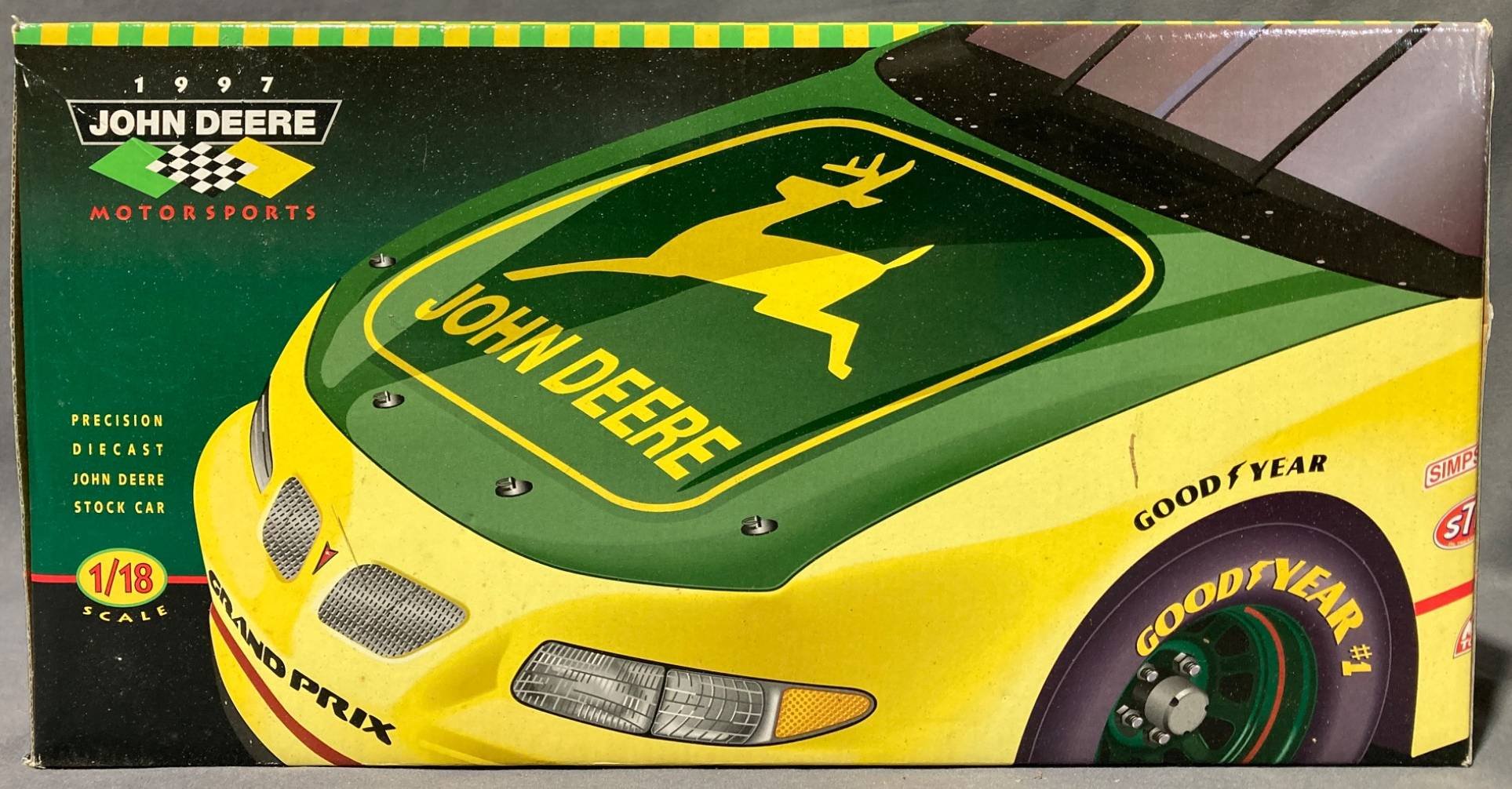 20051 1997 John Deere Diecast Stock Car by Ertl Inc. 1/18 Scale, 15”x6.5”x7.75”