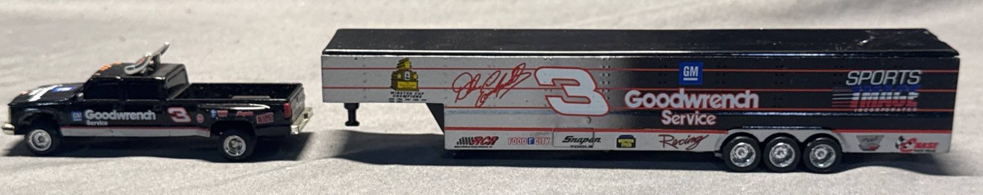 20062 Racing Collectables GM Goodwrench Truck and Trailer, 1:64 Scale, 1.5” x 3.5” x 8.5”