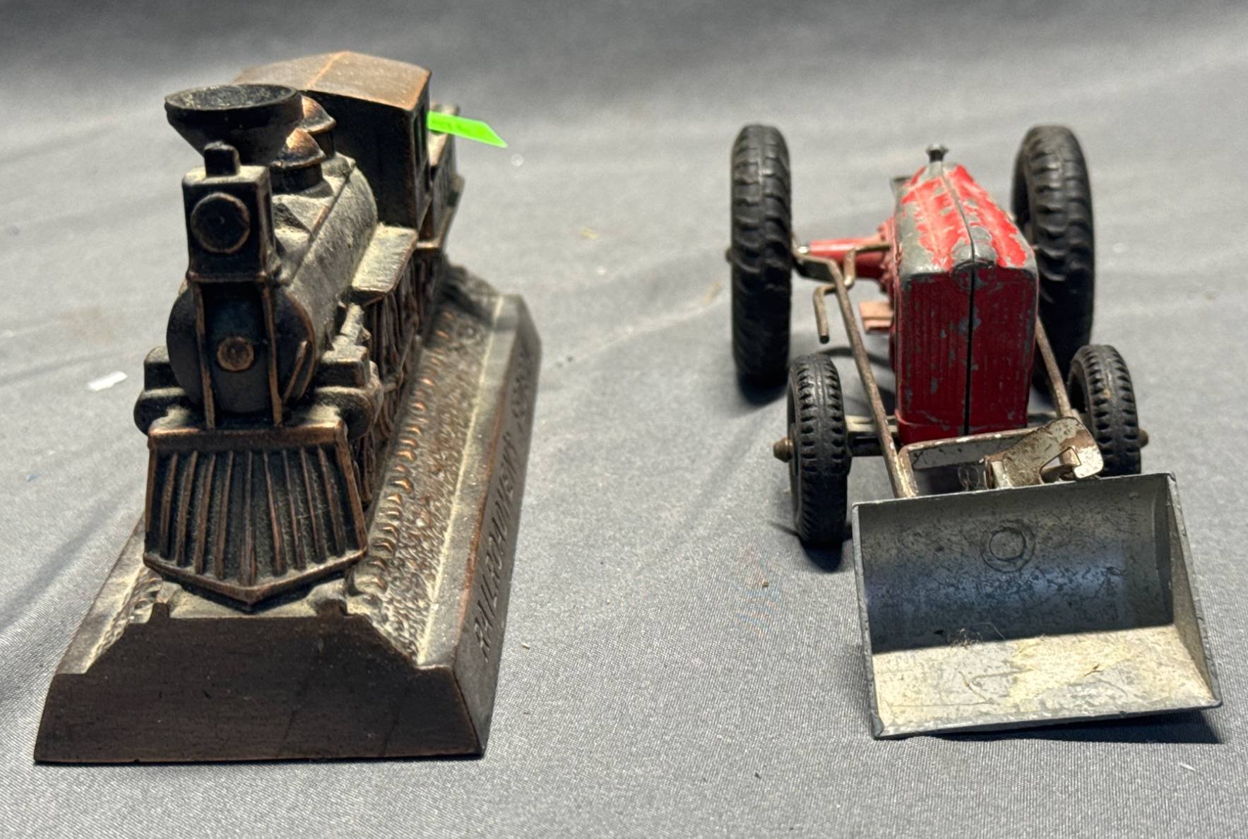 20074 Railroadmen’s Federal 1882 Cast Metal Train Bank and Die-Cast Red Tractor Loader, 2.25”-7”