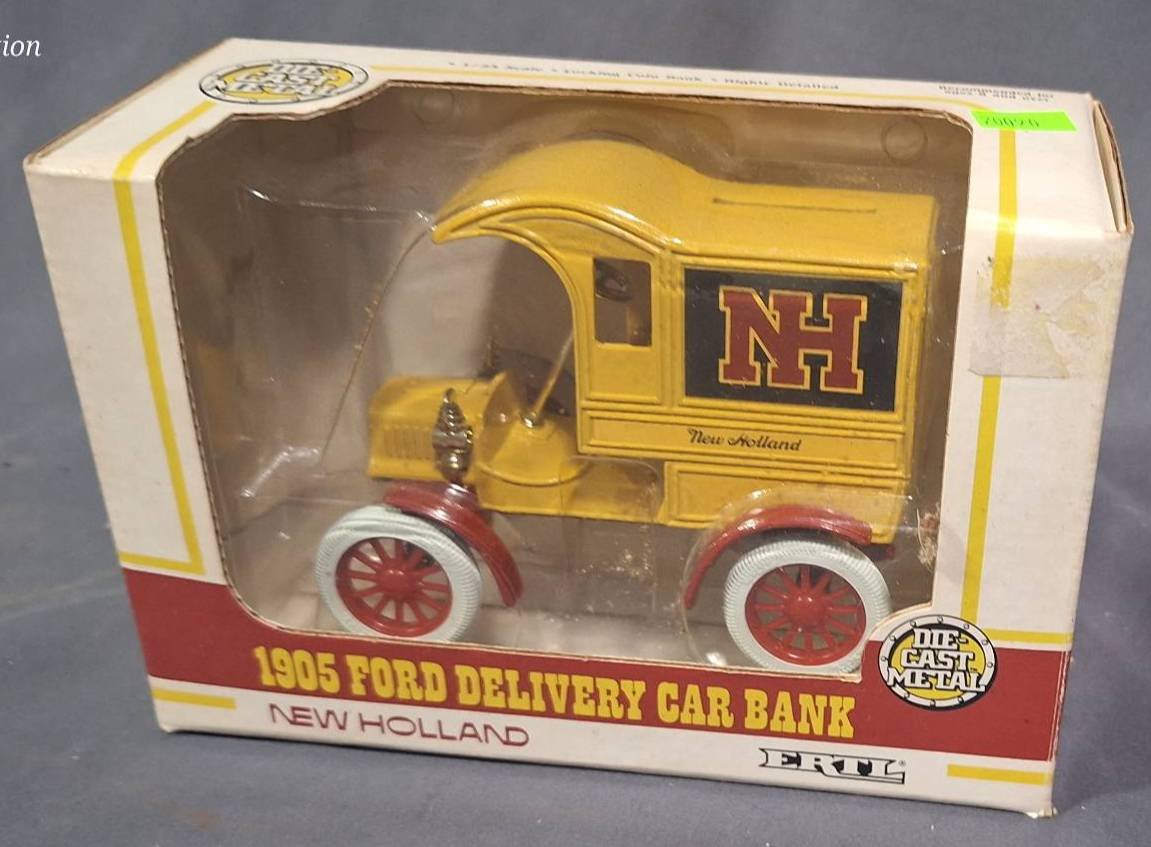 20090 Ertl 1905 Ford Delivery Coin Bank, New Holland Logo, 1:25 Scale