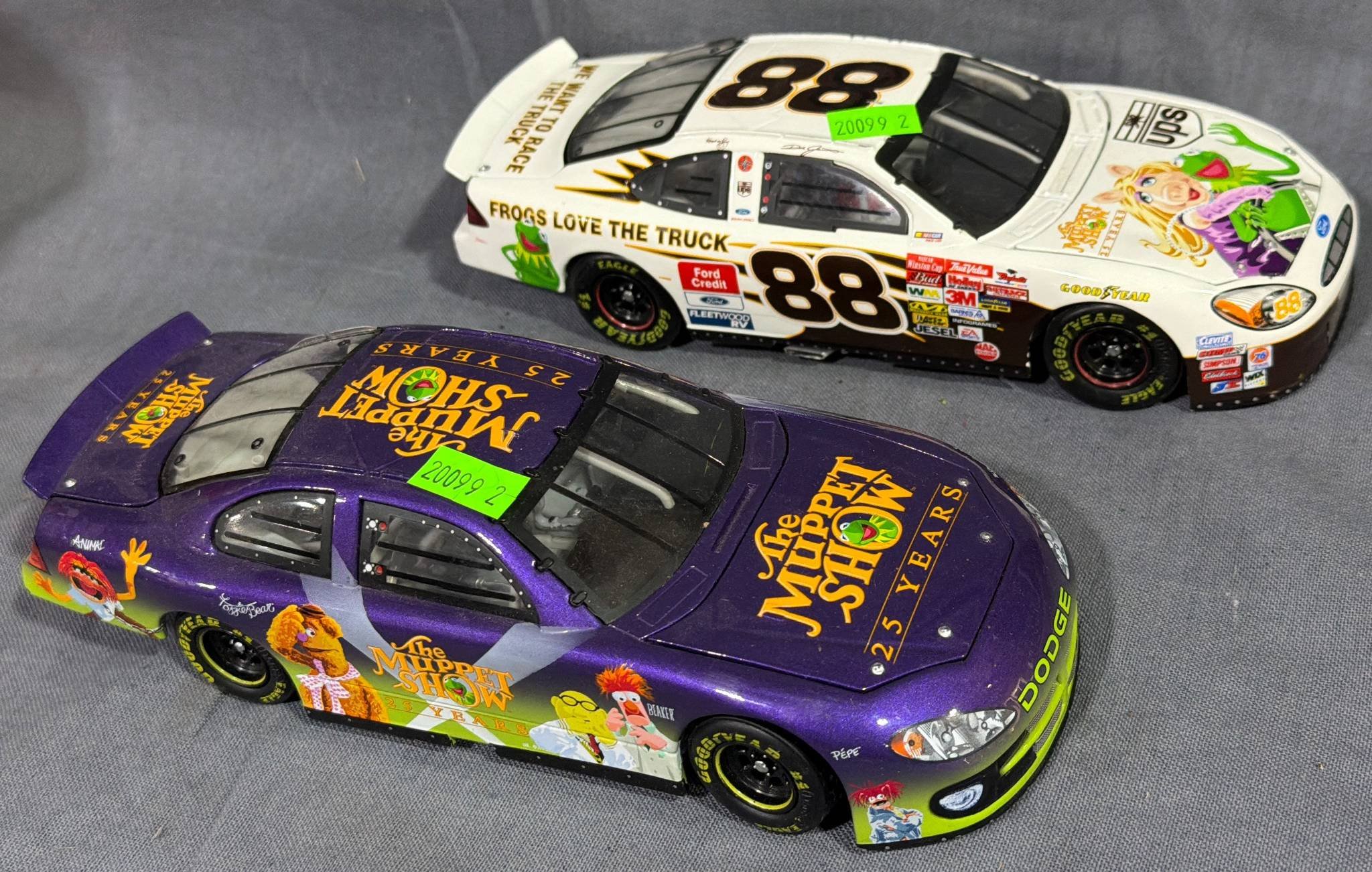 20099 2 NASCAR Die-Cast Race Cars Featuring Muppets-Themed Decals 8.5” x 3.5”