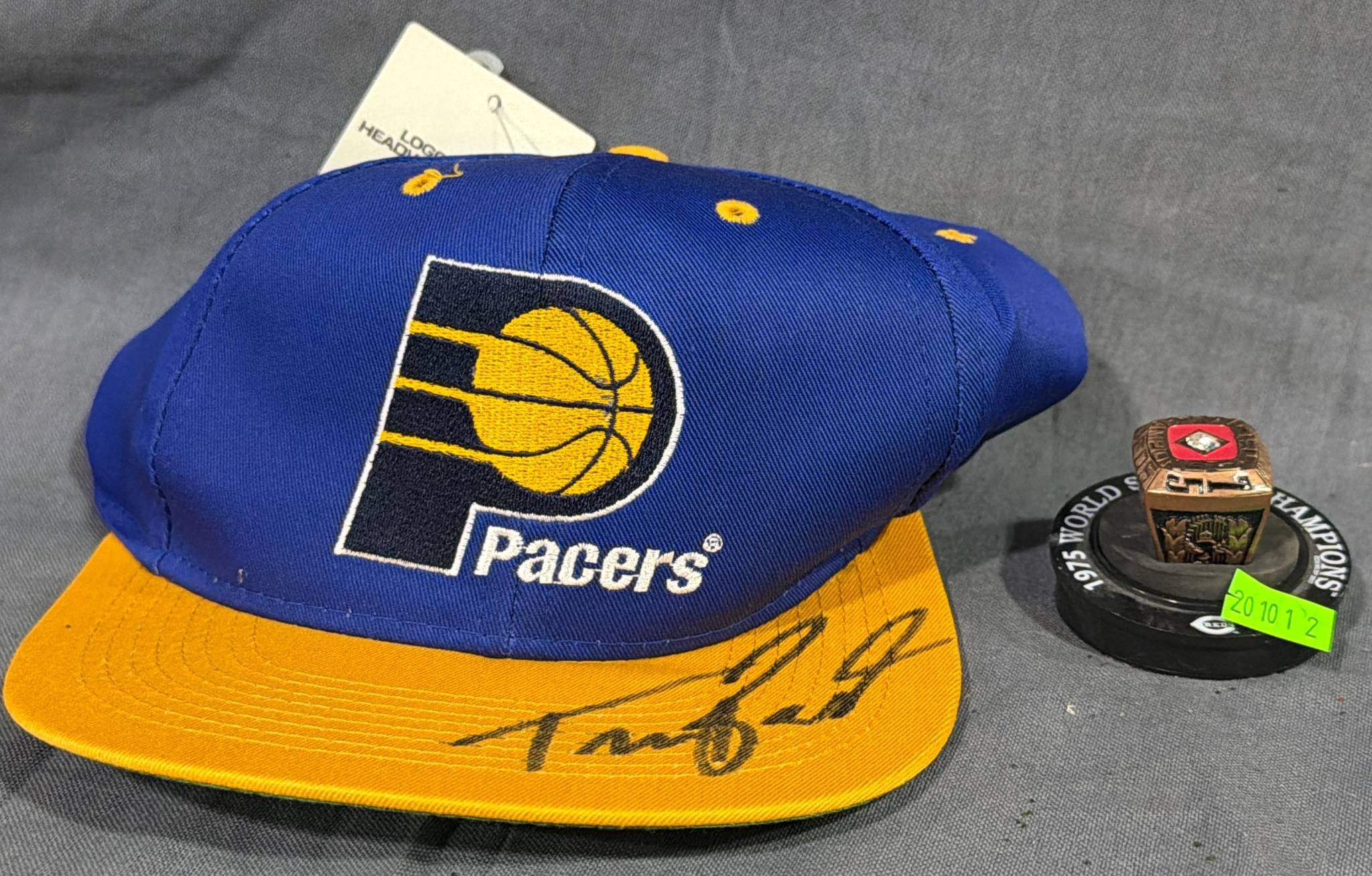20101 Indiana Pacers Logo 7 Cap with Autograph and 1975 Cincinnati Reds Replica Championship Ring