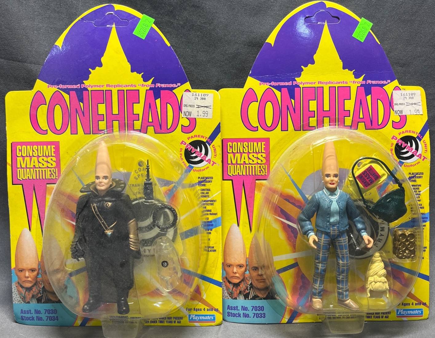 20268 Coneheads Action Figures by Playmates, Assortment Nos. 7039 and 7034 in Original Packaging