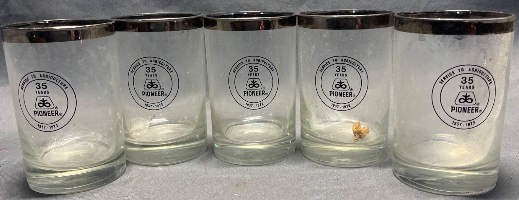 20271 5 Pioneer Service to Agriculture 35th Anniversary Glass Tumblers with Silver-Tone Trim, 4?