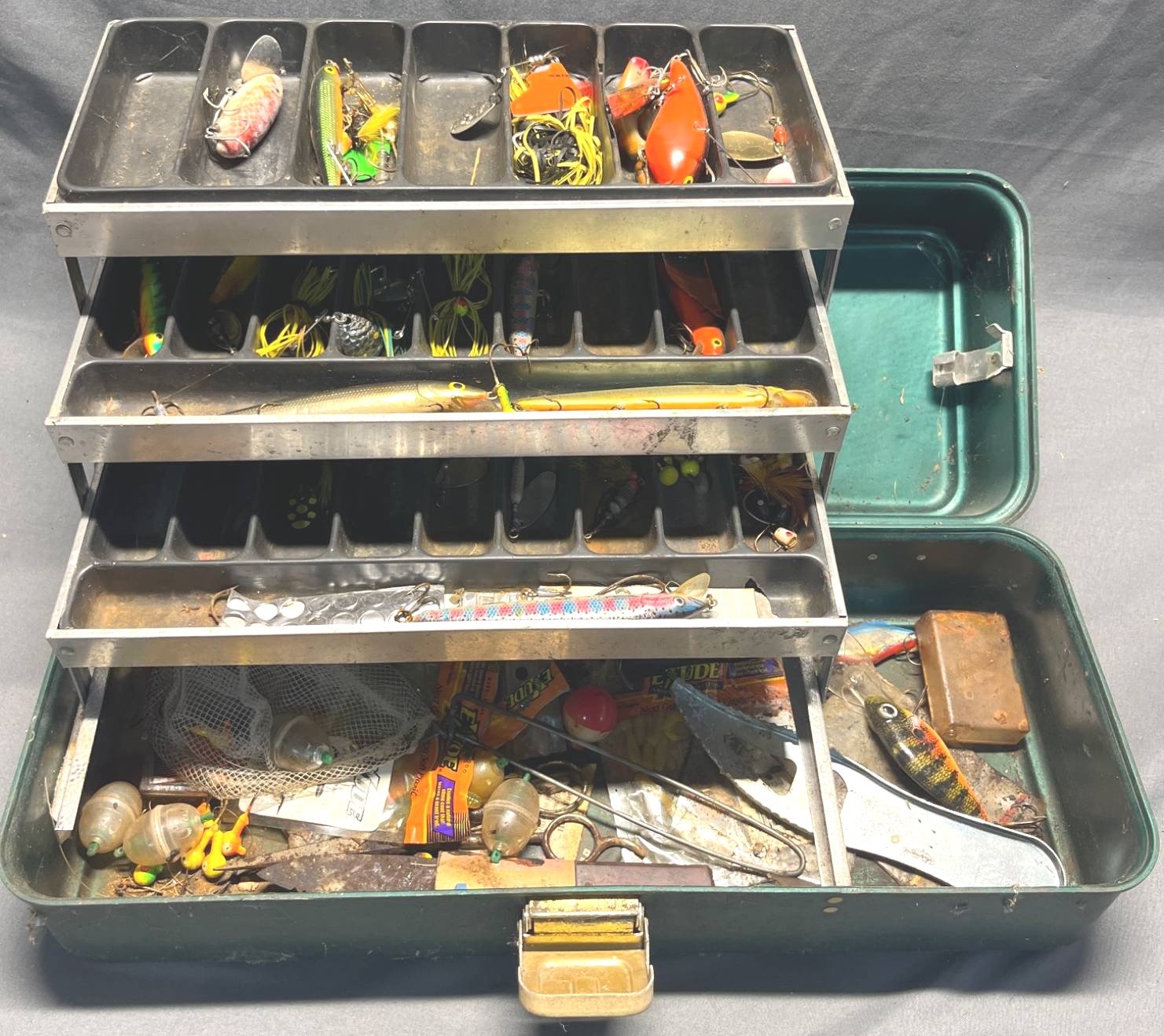 20272 Metal Tackle Box with Fishing Lures and Accessories Inc. Lures, Hooks and Spinners