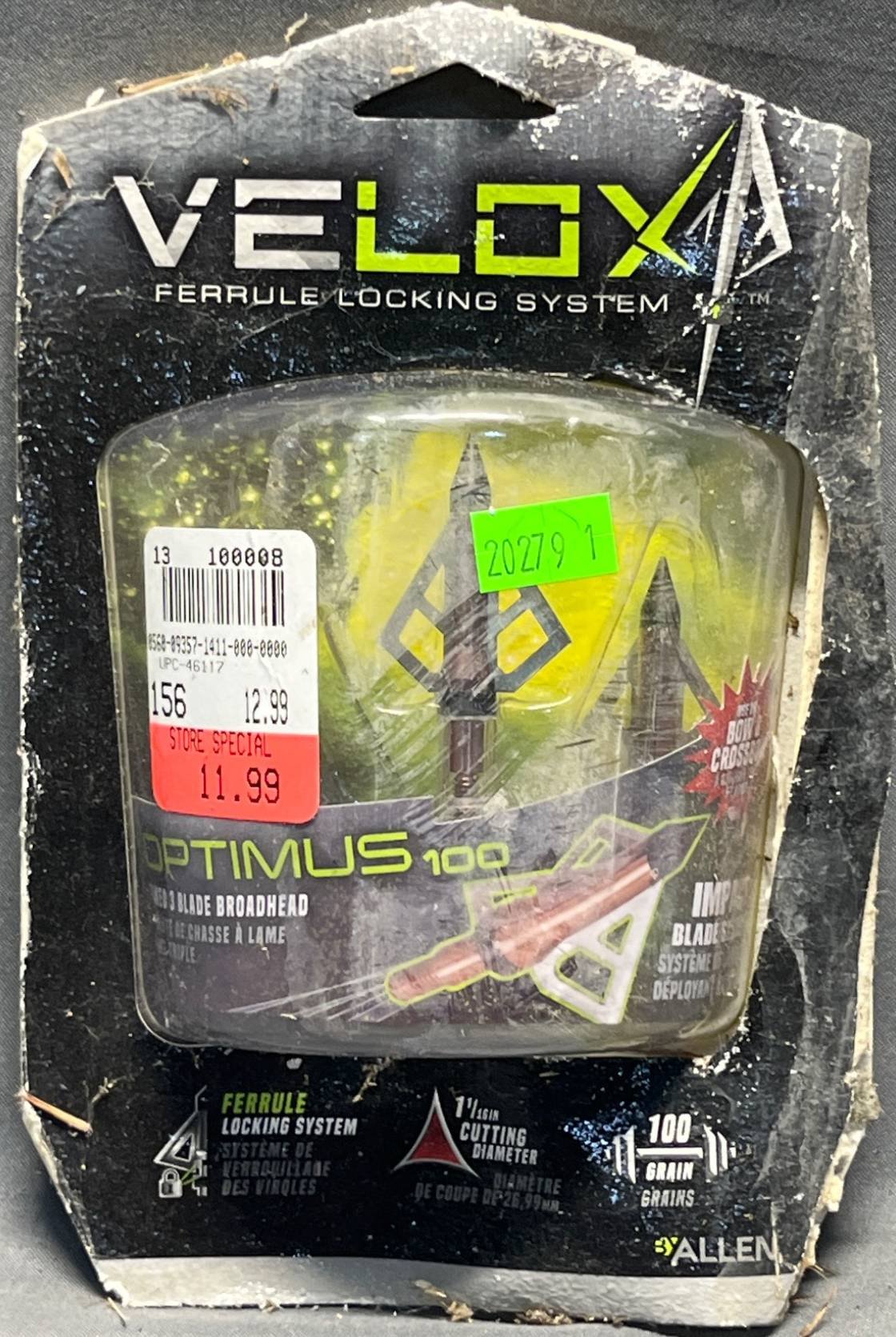 20279 Allen Velox Optimus 100 Grain Broadheads with Ferrule Locking System