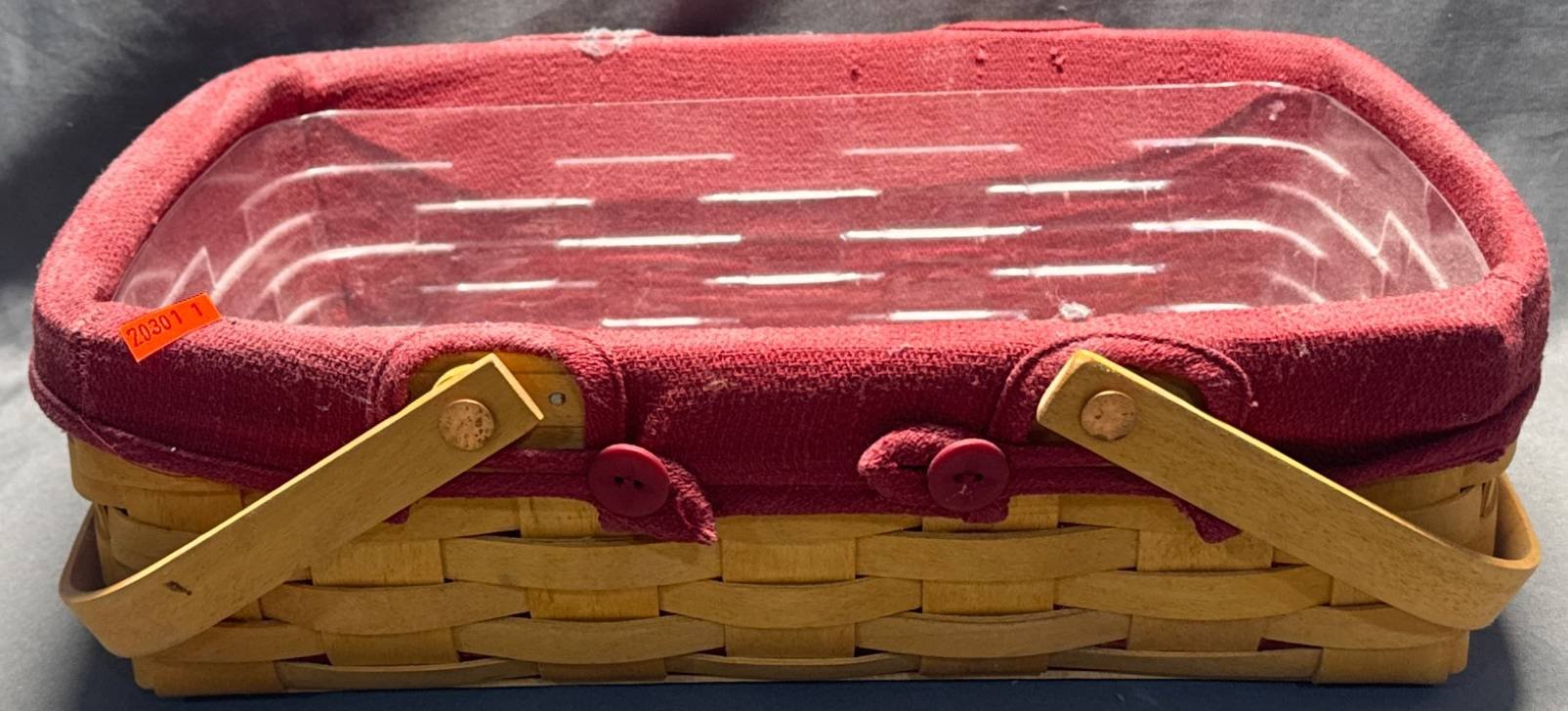 20301 2001 Longaberger Basket With Plastic Liner and Fabric Cover 14”