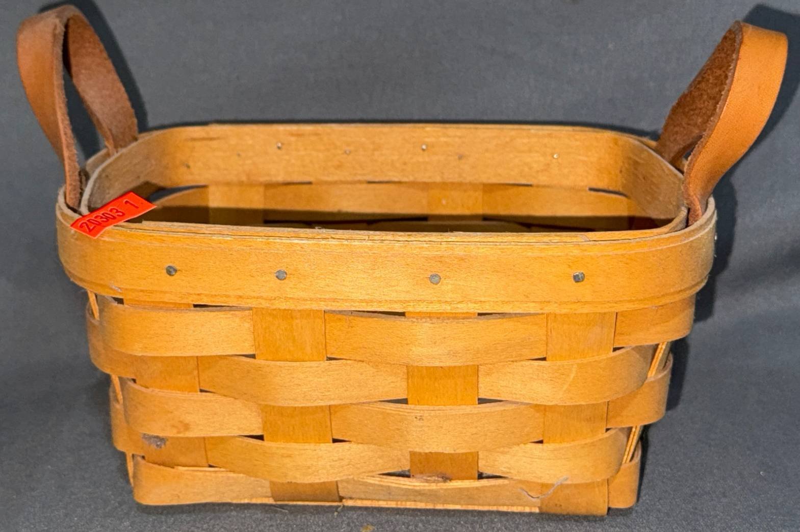 20303 1997 Handwoven Longaberger Basket with Leather Handles, 8”