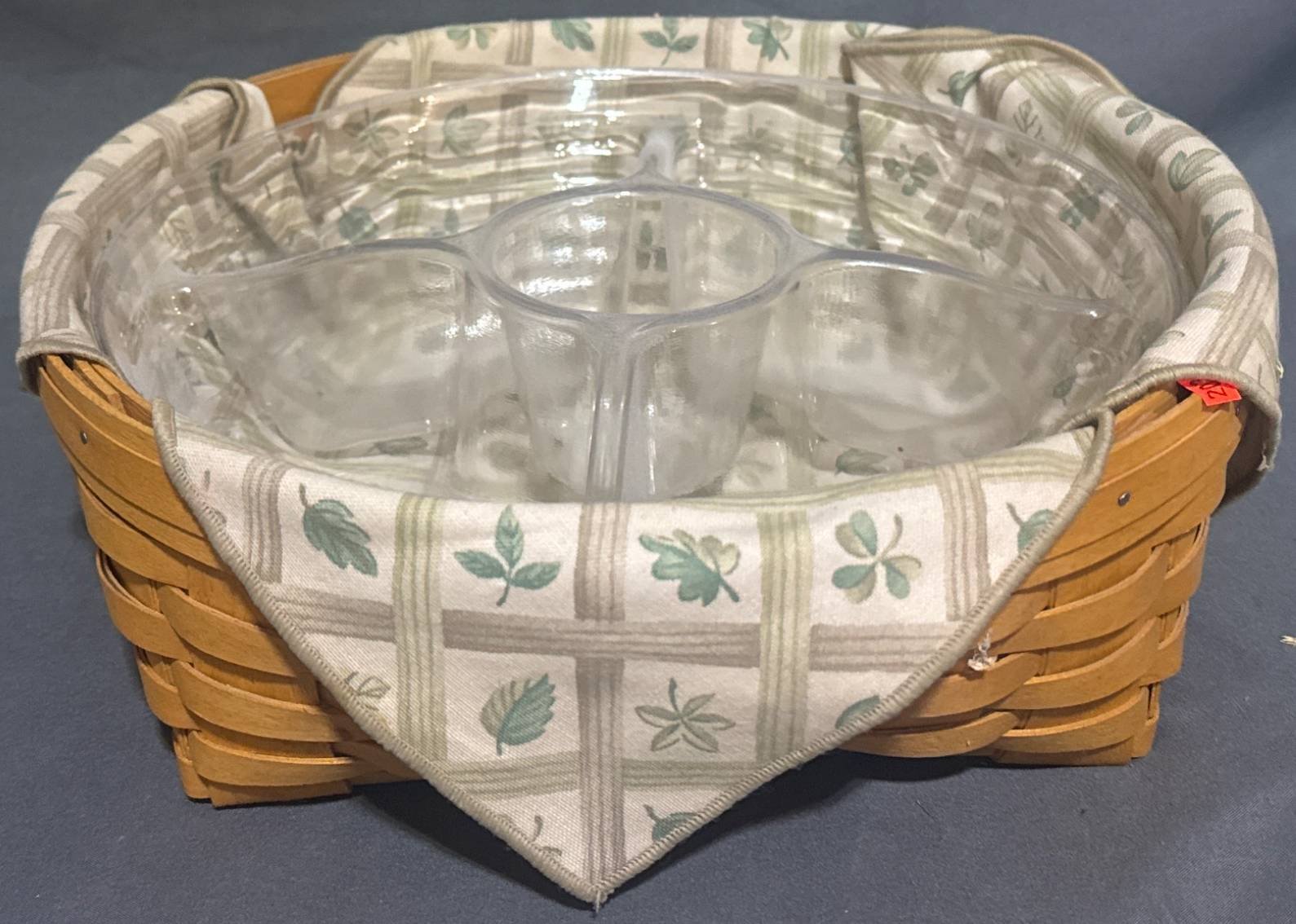 20305 2001 Longaberger Woven Basket With Fabric Liner And Divided Plastic Insert 12”