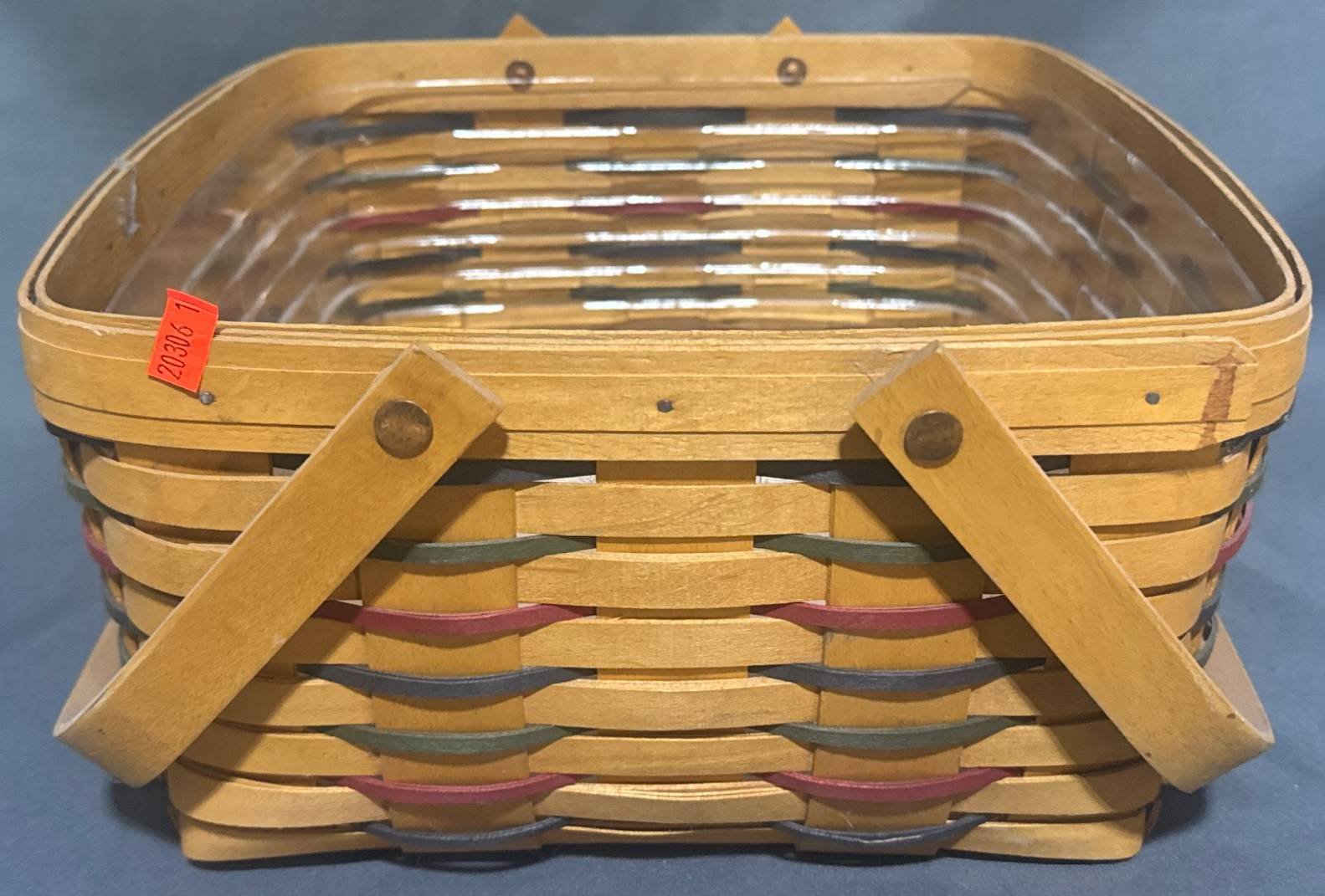 20306 1999 Longaberger Handwoven Basket with Plastic Insert and Dual Handles 12”