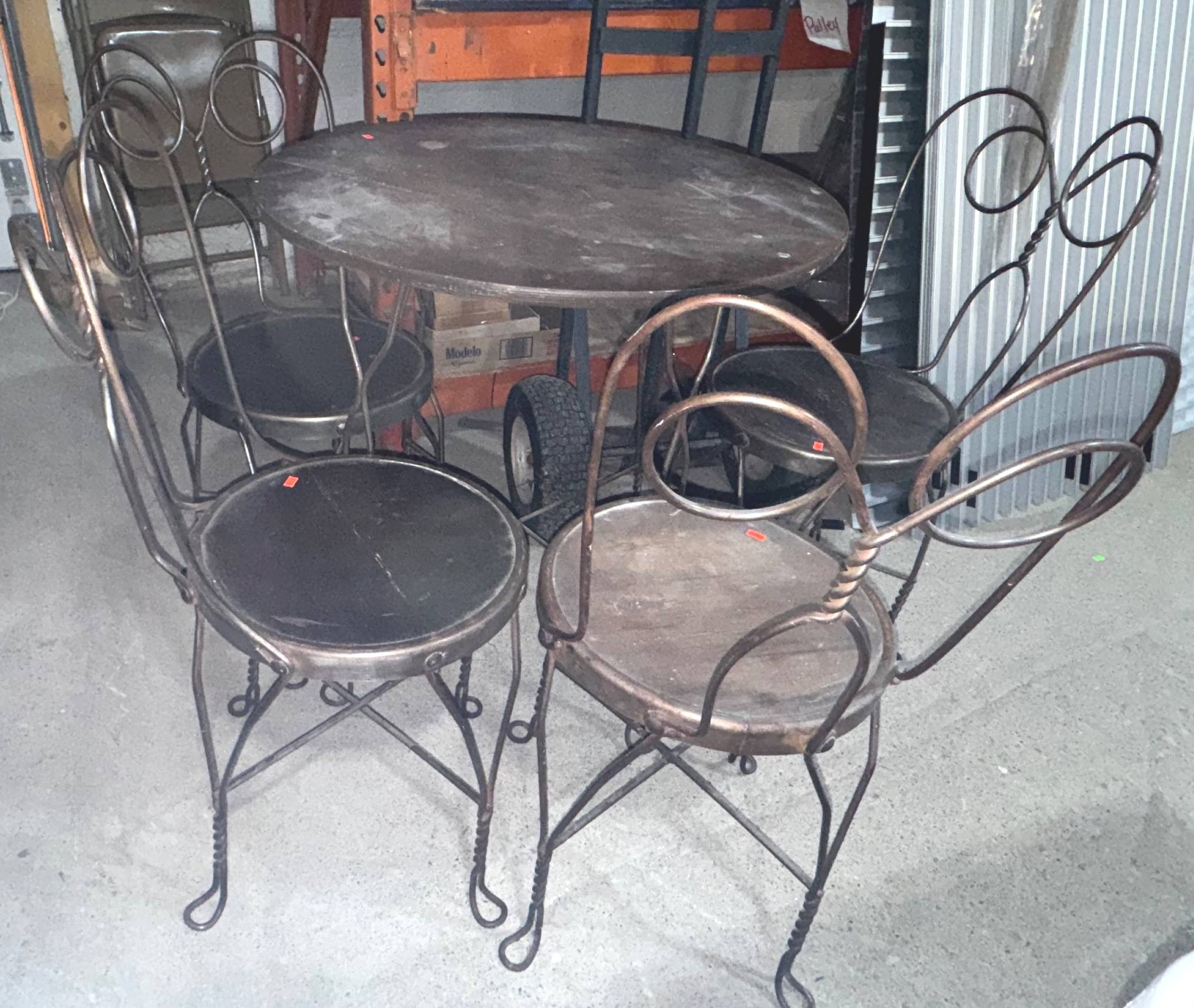 20328 Wrought Iron and Wood Bistro Table with (4) Chairs, 31”x29.5”, 33”x14”