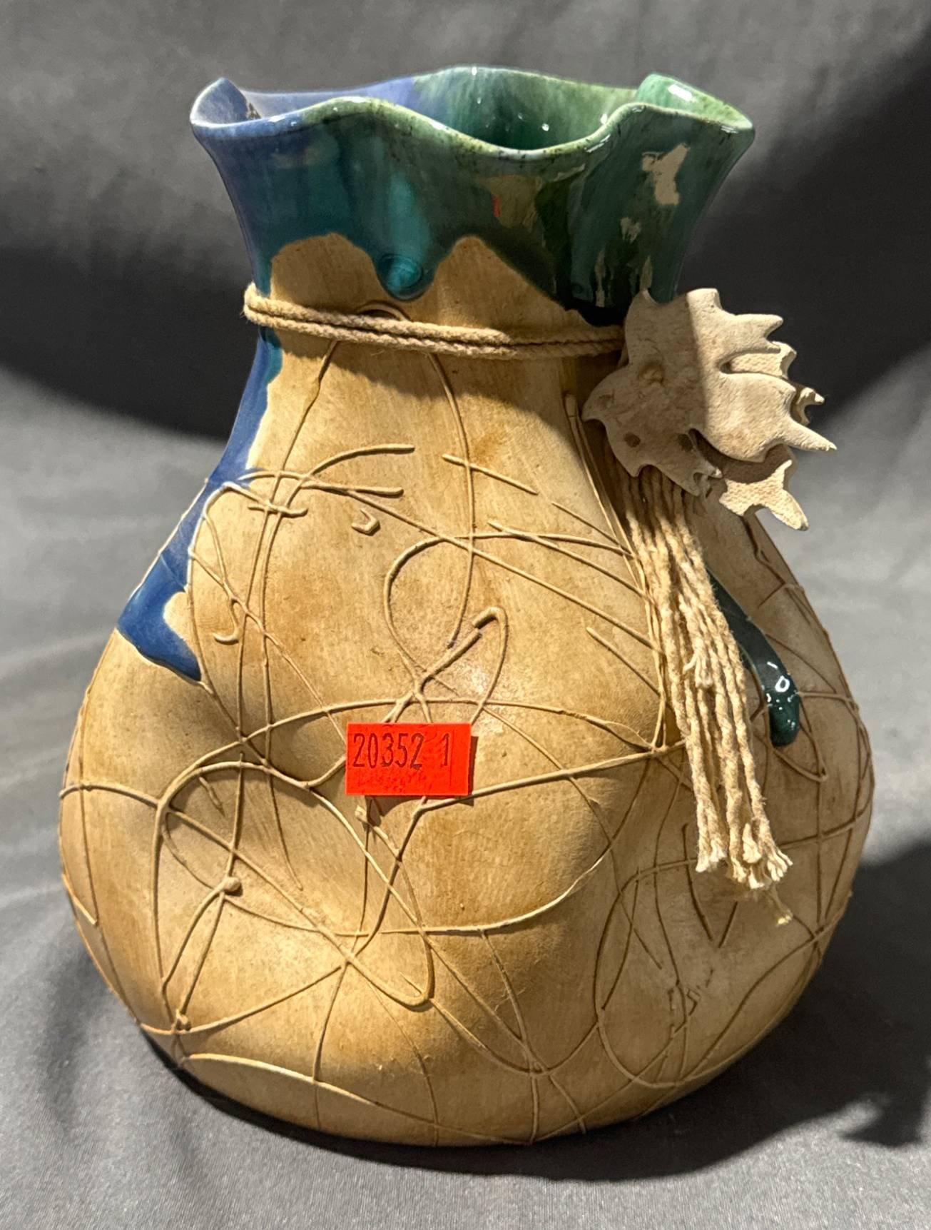 20352 Aruba Pottery Vase with Twine Accent, 6” x 6” x 7”