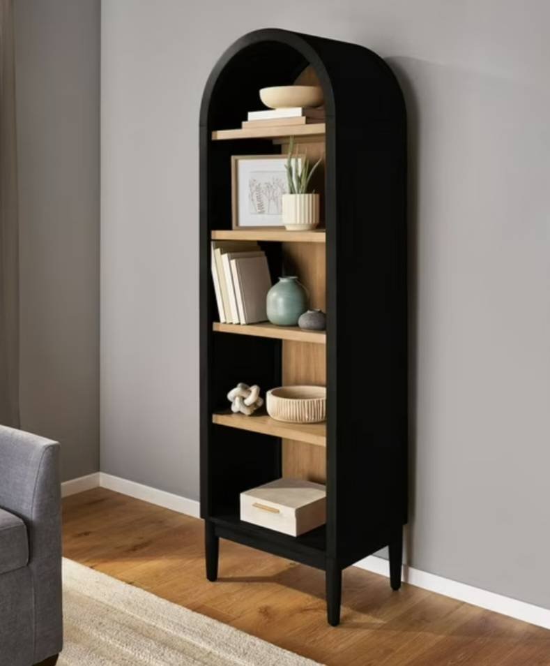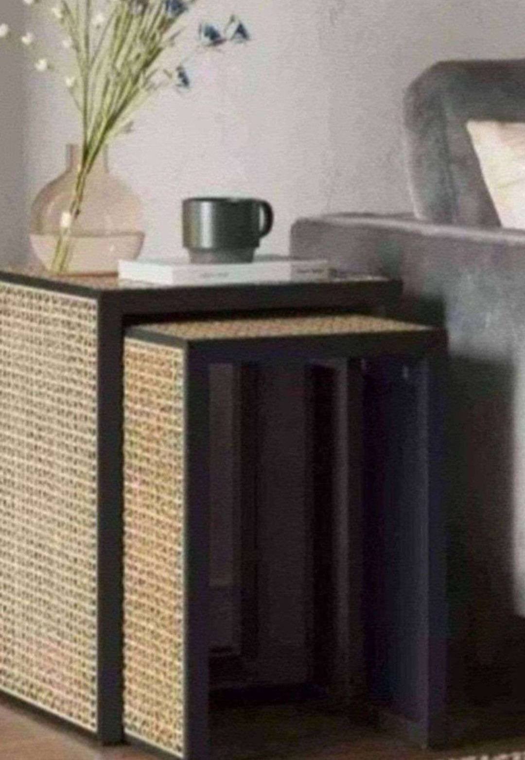 100 Threshold-brand nesting accent tables featuring black frames and natural cane panels. Includes 2 tables measuring 18? x 18? x 24? and 15? x 15? x 22?.