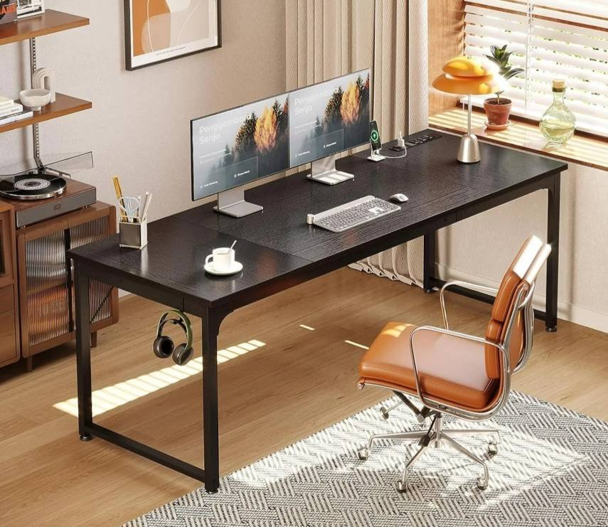7516 Industrial-Style Bar Table with Metal Frame and Faux Wood Top-Approx. dimensions: 55.11×17.71×39.37 in.