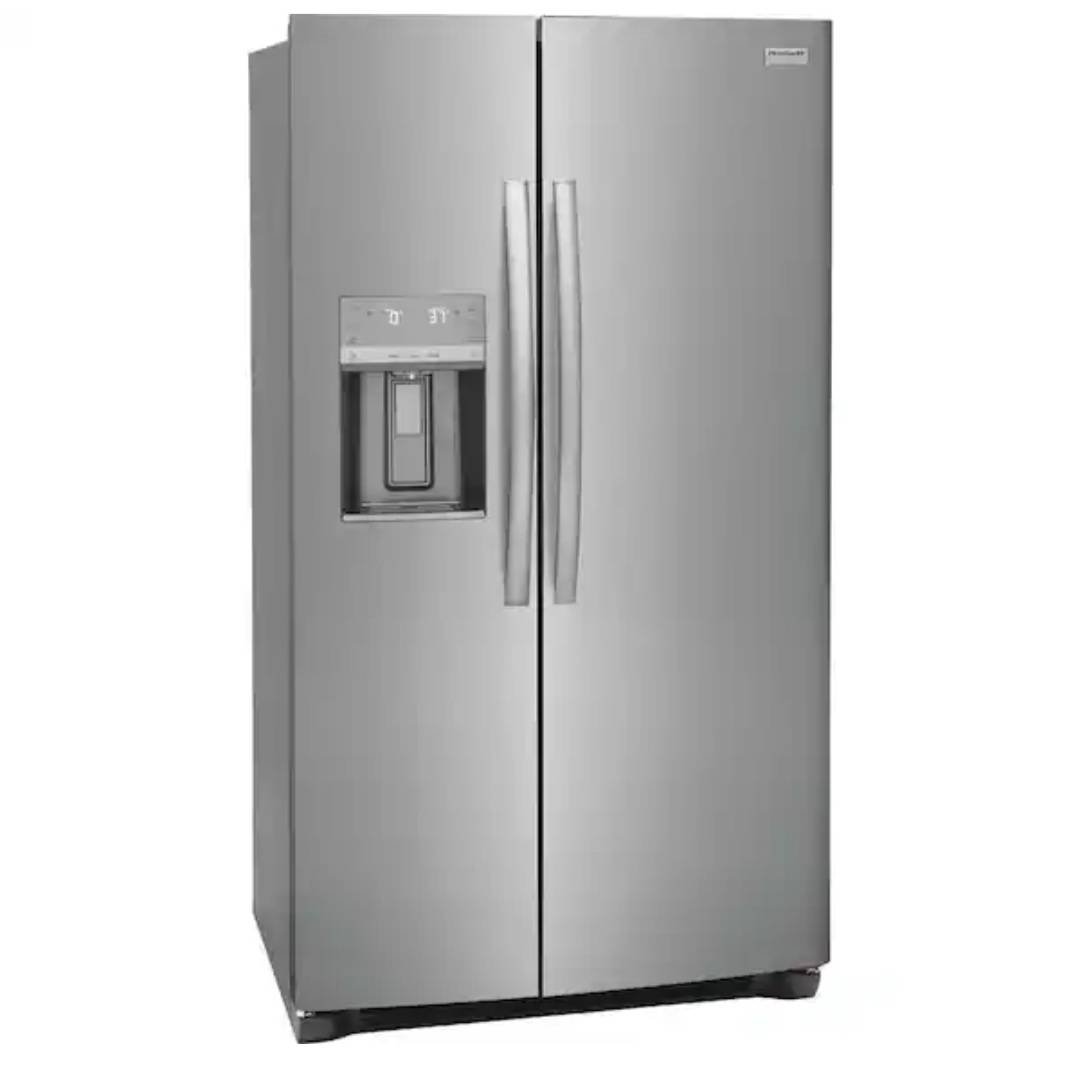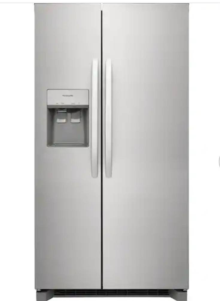 3 Frigidaire 36.1 in. 22.3 cu. ft. counter depth side-by-side refrigerator in stainless steel. Model # FRSC2333ASG. Minor scuffing on side