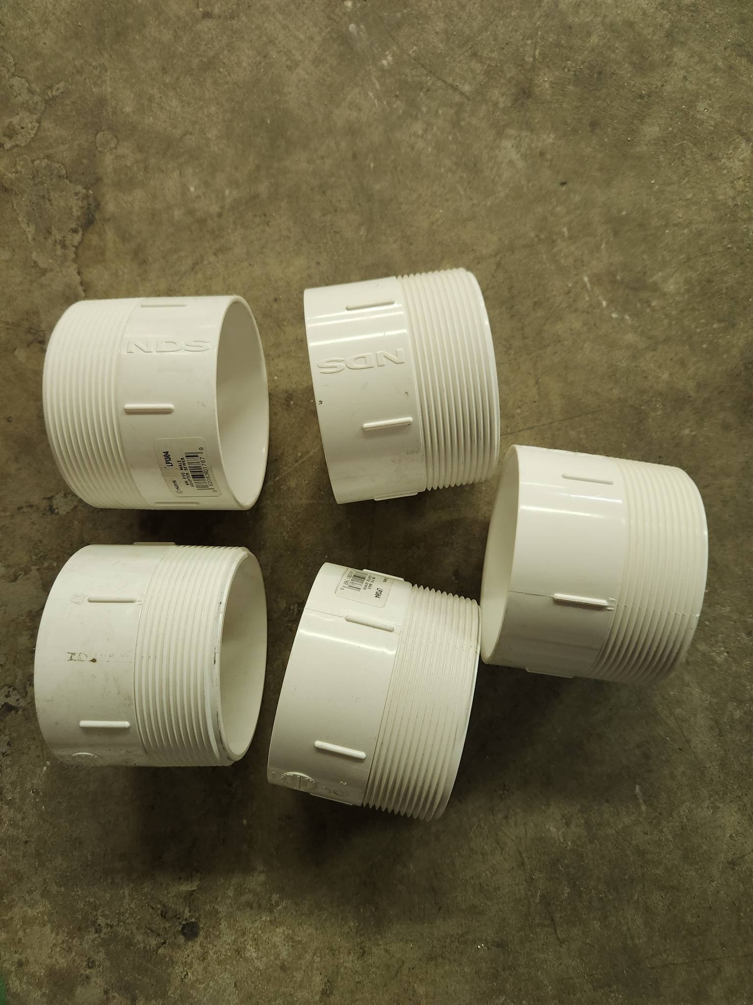 34 5 Pack NDS PVC Male Adapters, 4 In. Sewer and Drain Hub x MPT