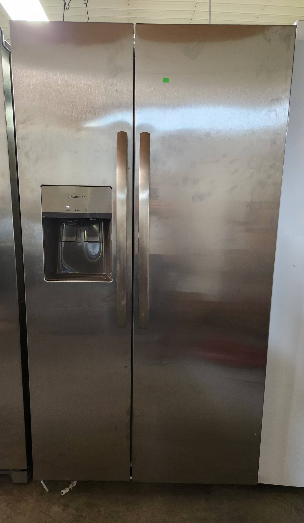 4 Non working Frigidaire 36 in. 26 cu. ft. Standard Depth Side by Side Refrigerator in Stainless Steel Model # FRSS2623ASM has small ding on bottom front don’t get cold