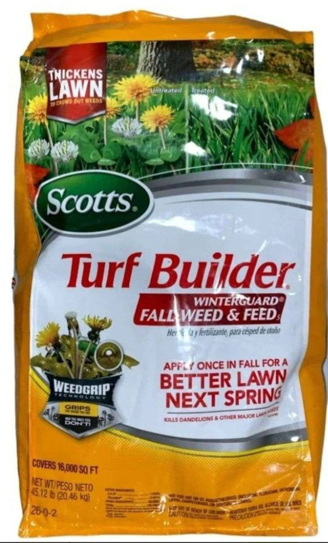 40 Scotts Turf Builder Winterguard Fall Weed and Feed, 16,000 Sqft Coverage, 45.12 Lbs