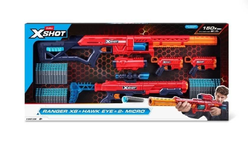 48 ZURU XSHOT Excel Ranger X8, Hawk Eye & Micro Blaster Combo Pack includes 150 foam darts