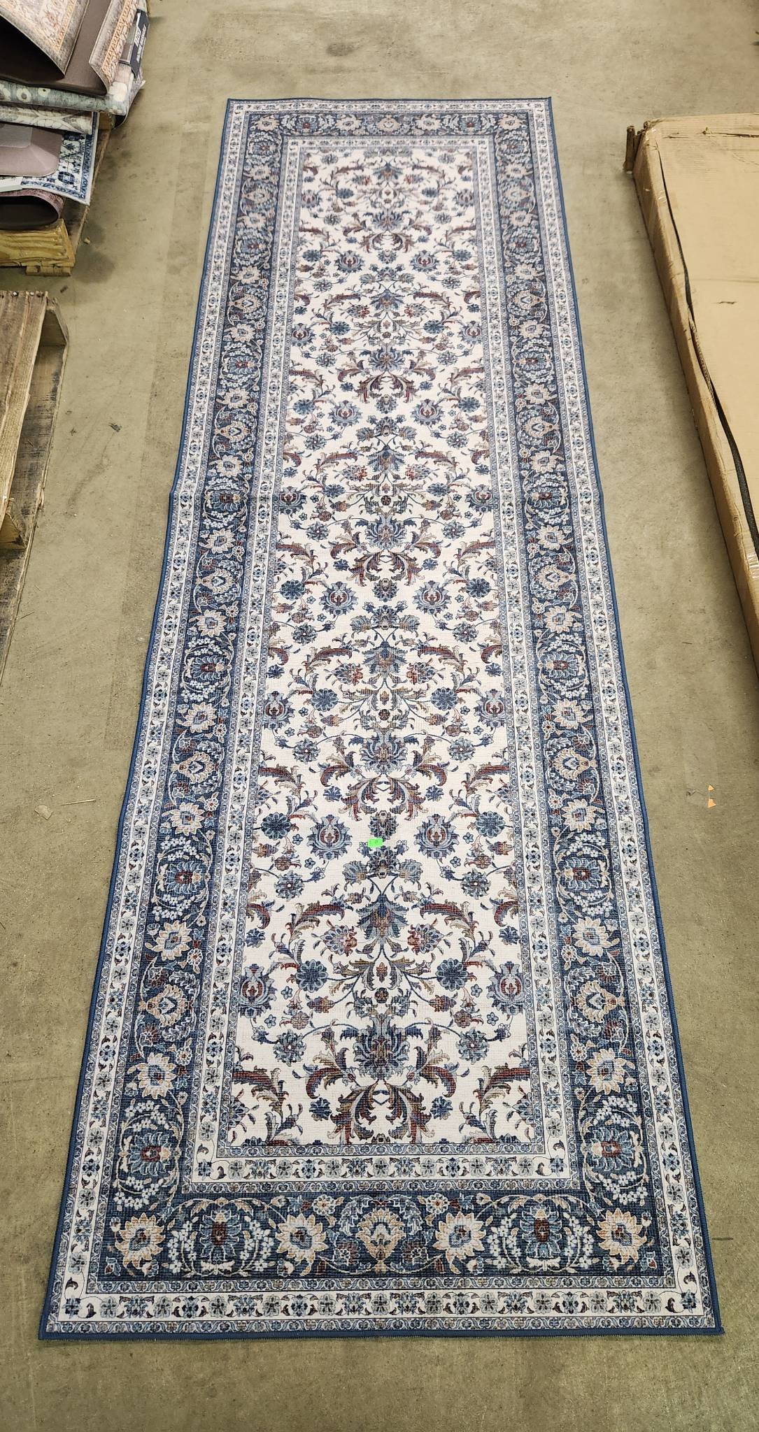 67 Blue and White Floral Pattern Runner Rug 96? x 30?
