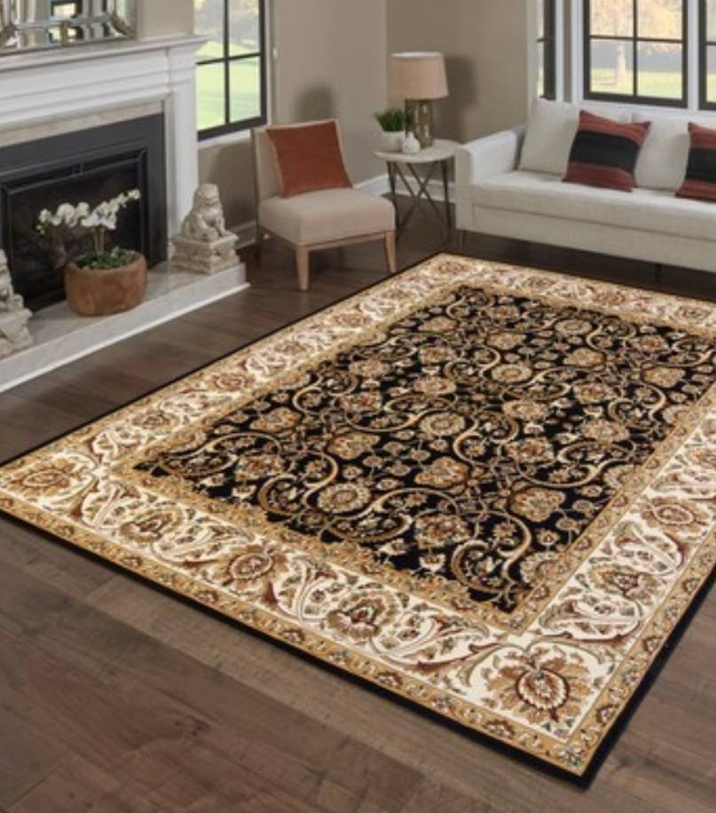 79 Gertmenian Majestic 5’3? x 7’5? Black Indoor Border Area Rug