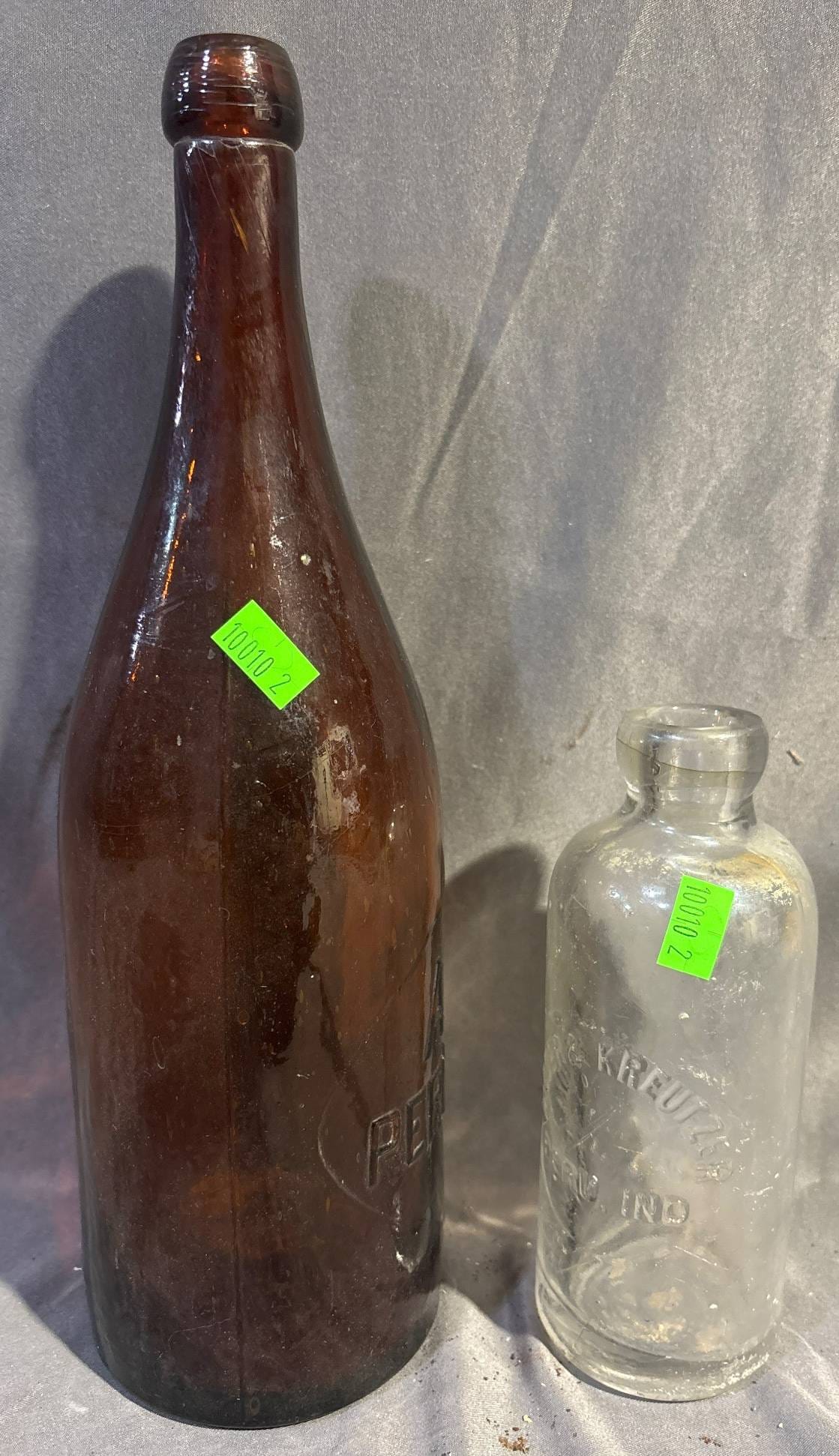 10010 2 Peru, IN Glass Bottles with Embossed Text, A.R. Peru, Ind., 11.5” and 6.5” Tall