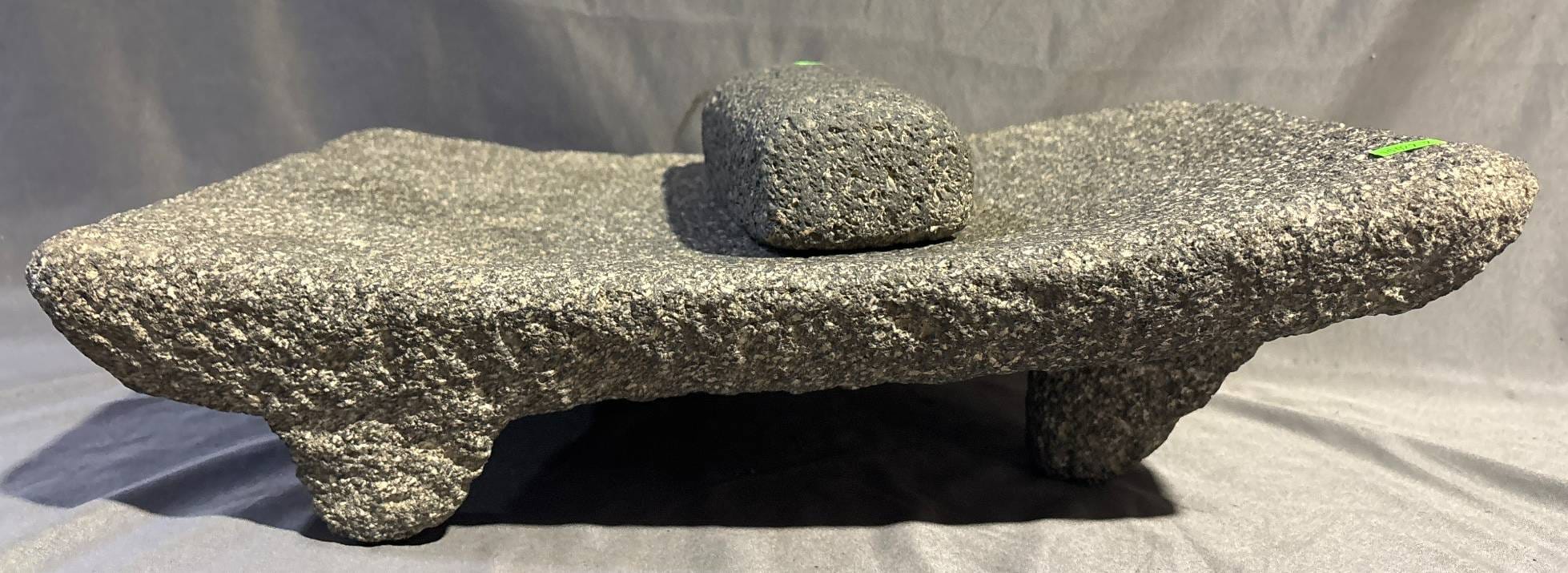 10022 Metate Grinding Stone with Handheld Tool, 17” Long