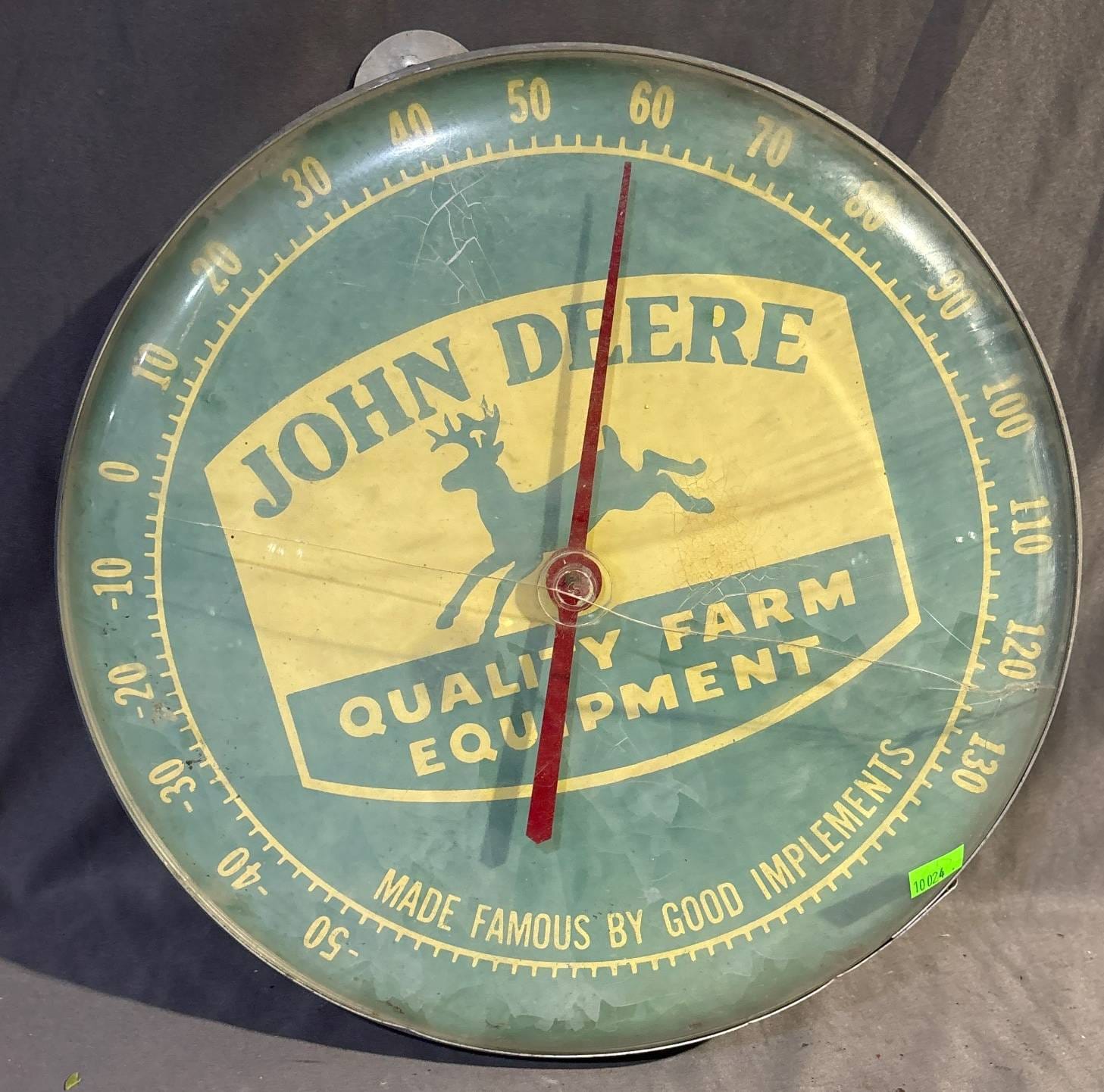 10024 John Deere Metal Thermometer with Farm Equipment Branding, 12” Diameter
