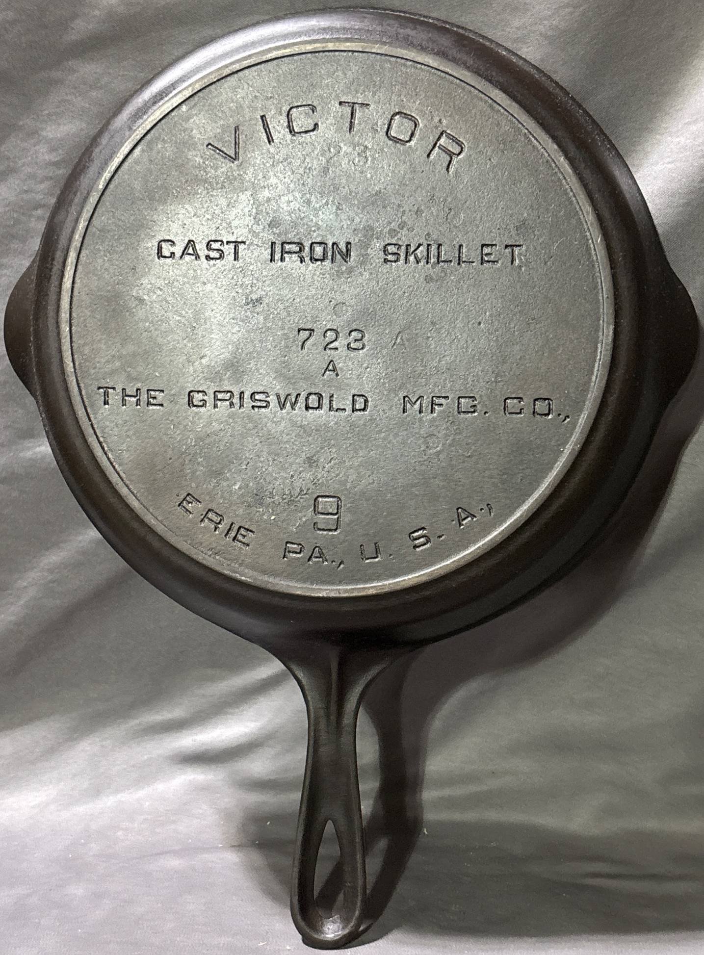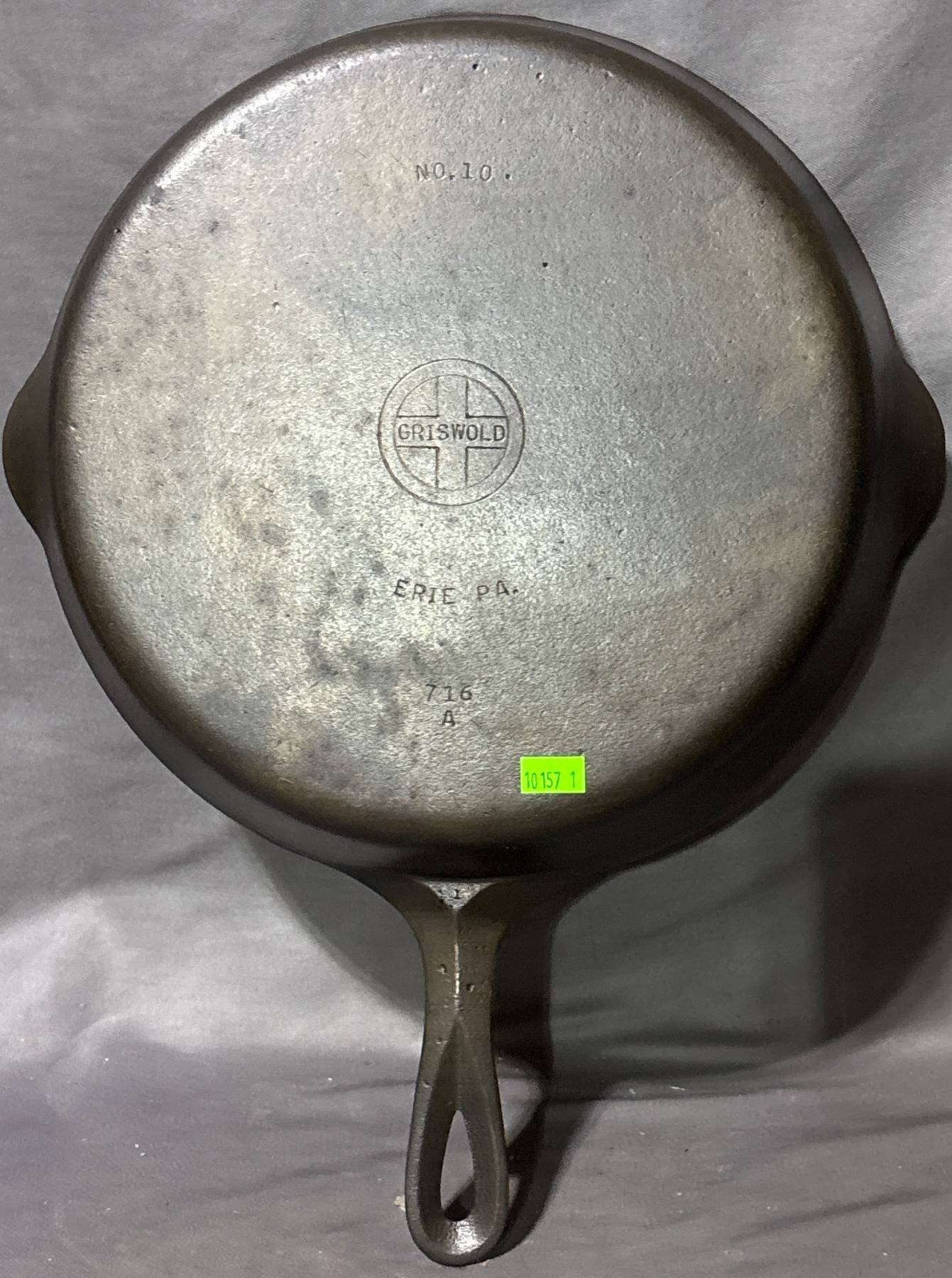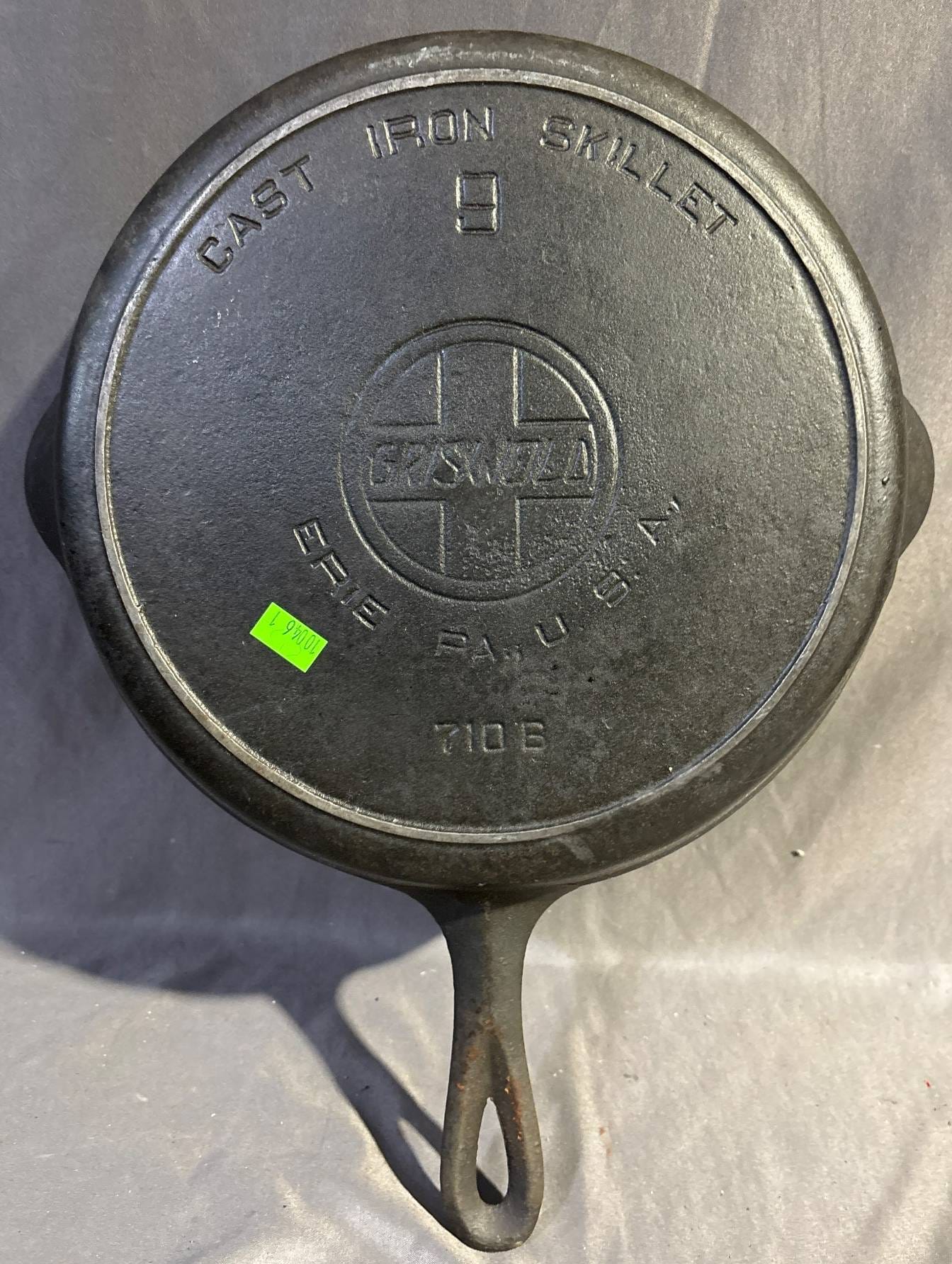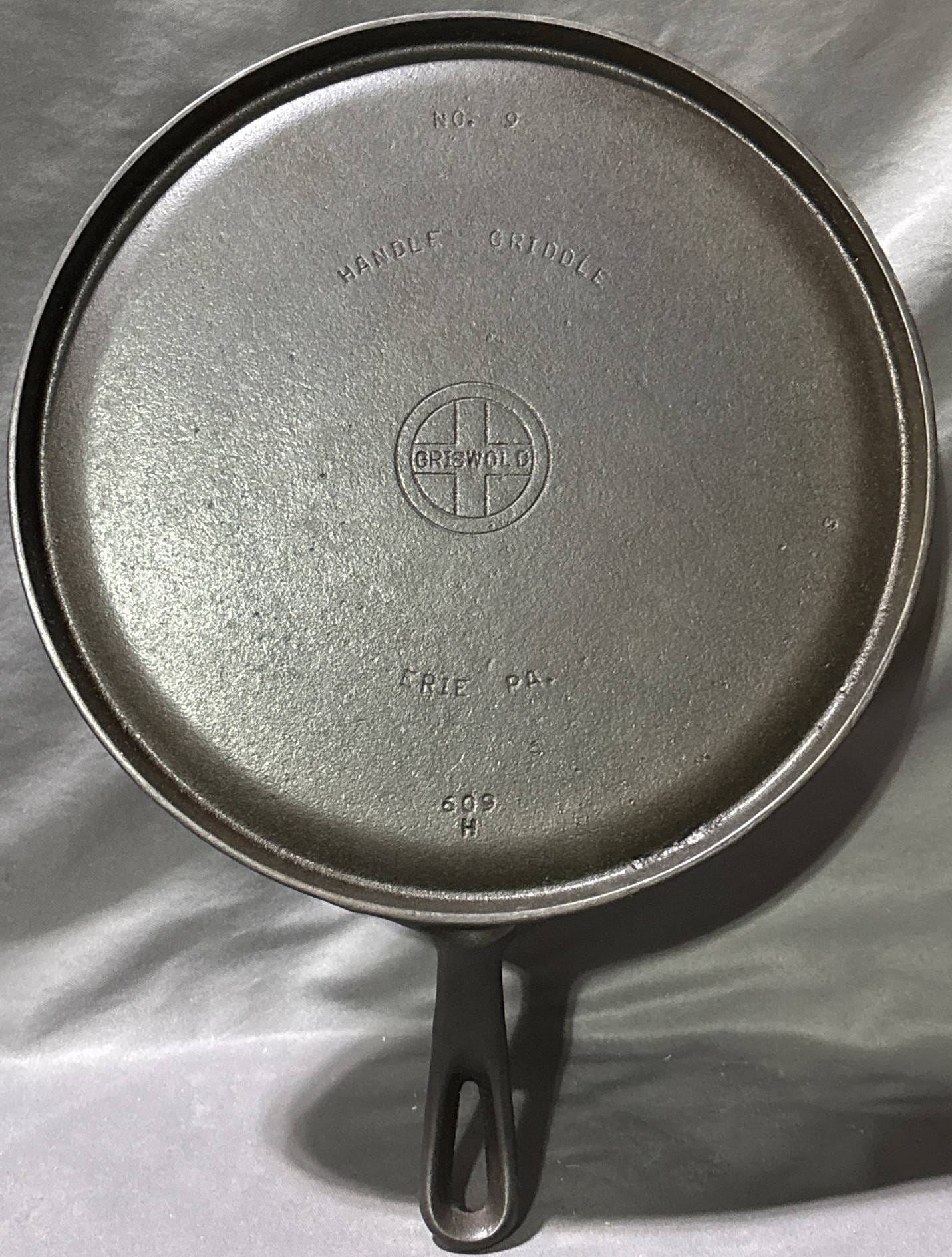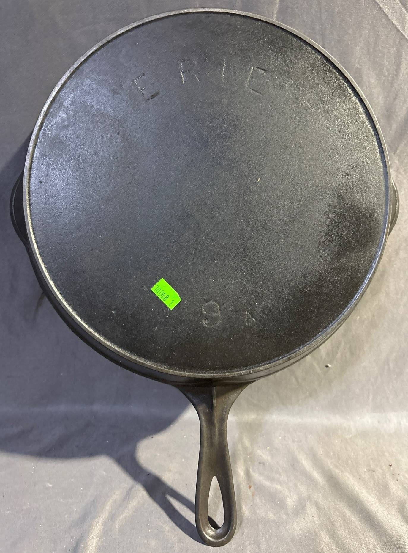 10046 Griswold No. 9 Cast Iron Skillet with Erie PA Markings (cracked near handle) 11?