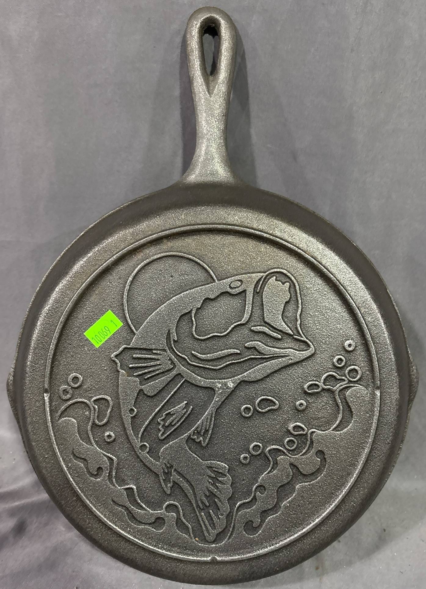 10069 Lodge Wildlife Series Cast Iron Skillet with Embossed Fish Design, 10?