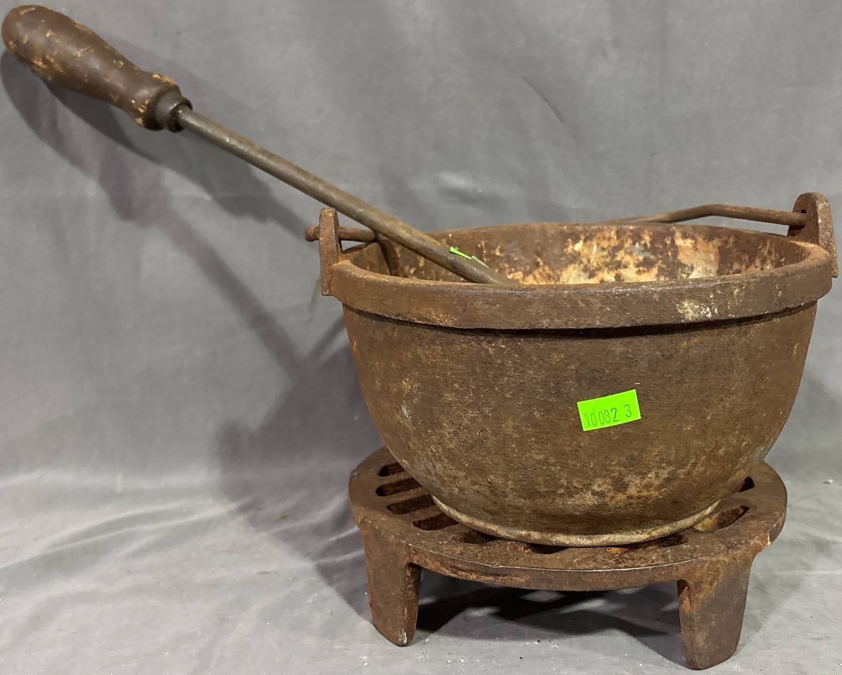 10082 Cosper No. 8 Cast Iron Cauldron with Handle, Grate, and Ladle, 7.5” Diameter