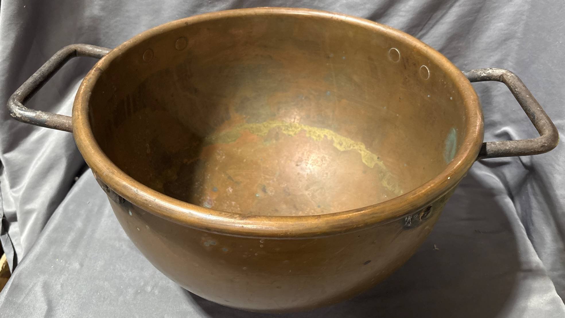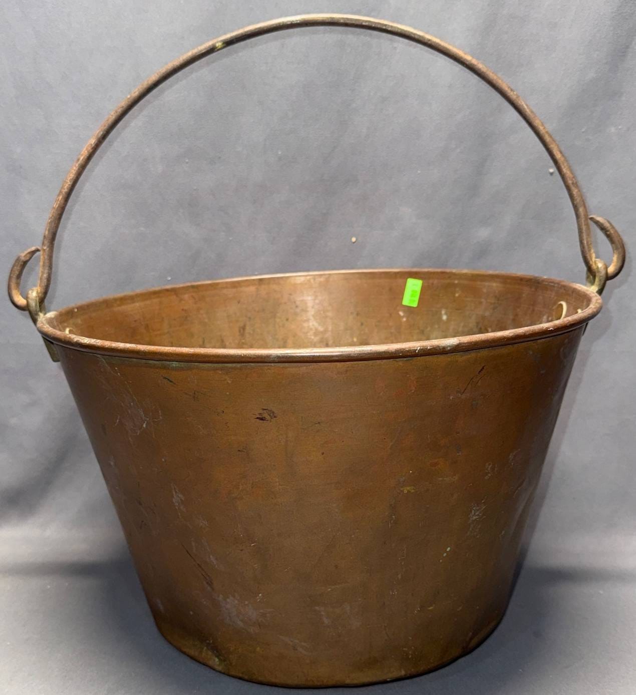 10180 Copper Bucket with Handle, Marked ‘Manufactured Feb. 13, 1883,’ 13”x9”