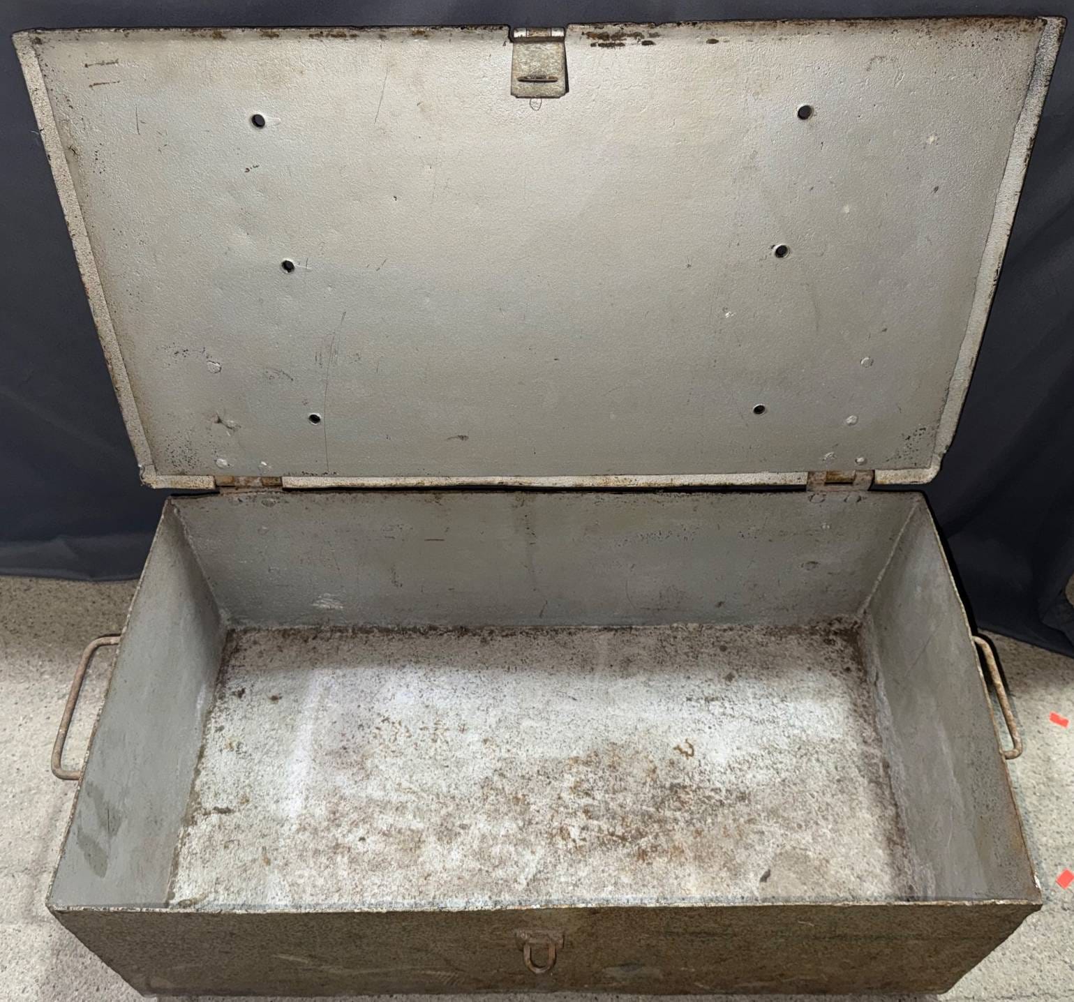 10194 Metal Storage Trunk with Hinged Lid and Handles, 31.5”x11”x17”