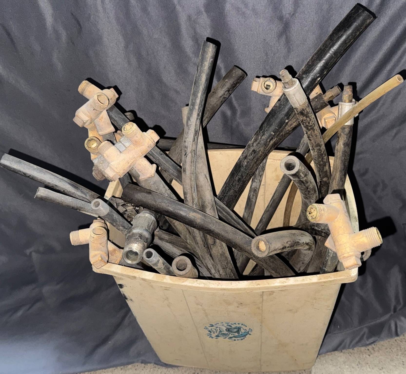 10204 Rubber Hoses and Metal Fittings in Plastic Bin