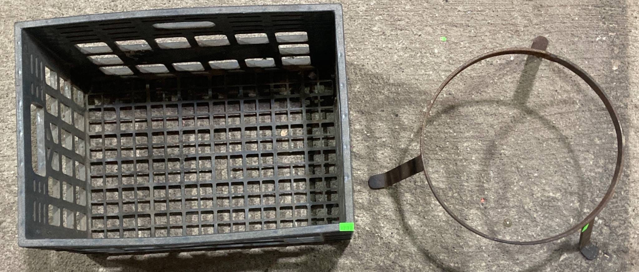 10213 Plastic Crate with Metal Stand, 19”x13”x10.75”, 12.25”x6.75”