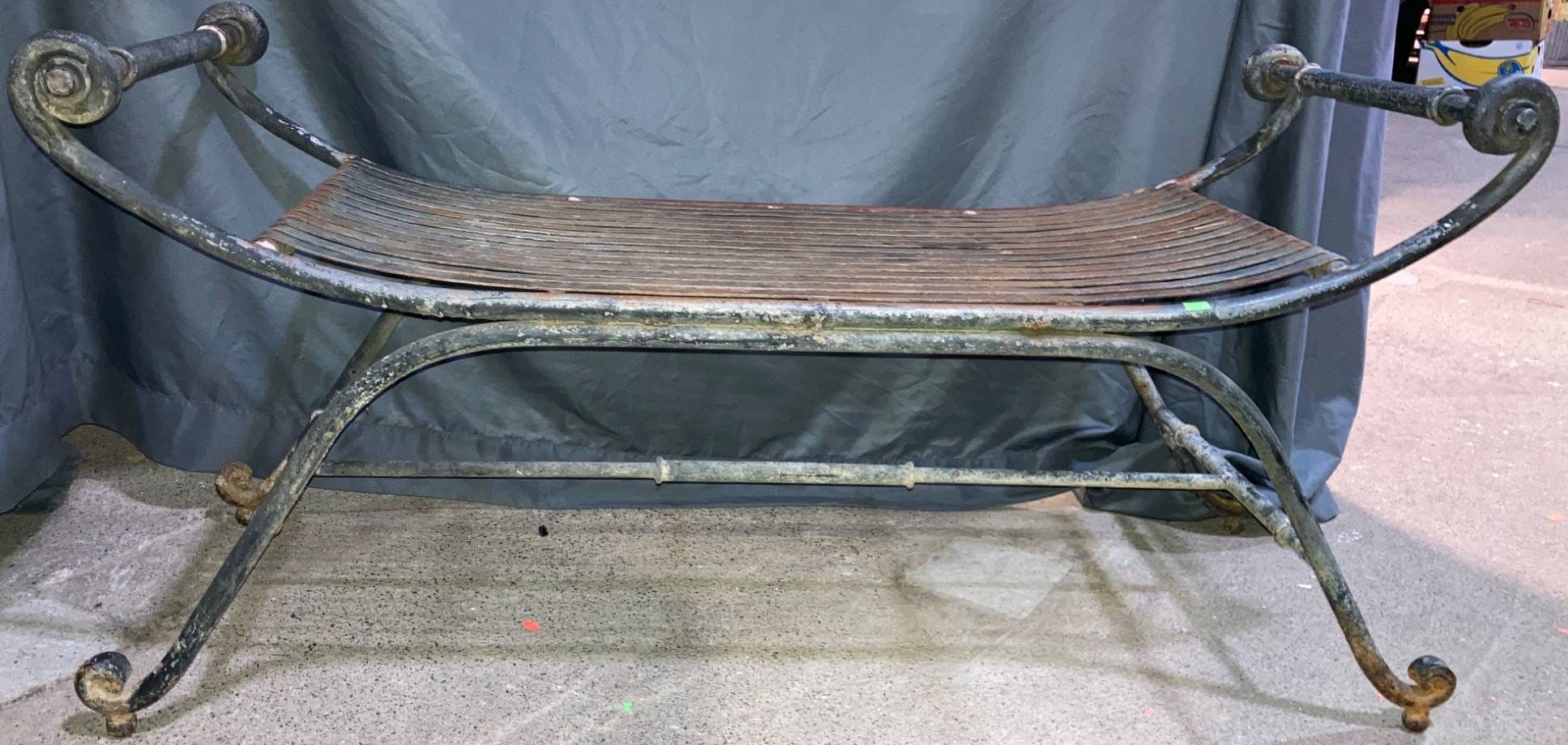10223 Wrought Iron Bench with Slatted Seat and Curled Armrests,48”x19”x25”