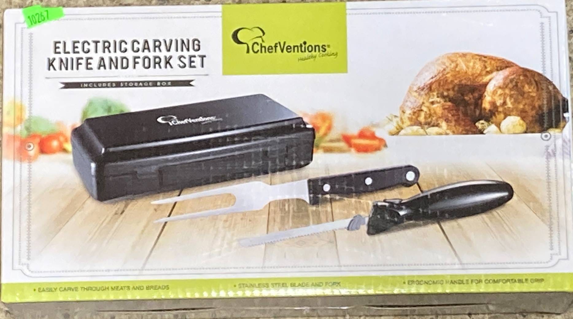 10267 ChefVentions Electric Carving Knife & Fork Set with Storage Box,11.5”x3”x6”