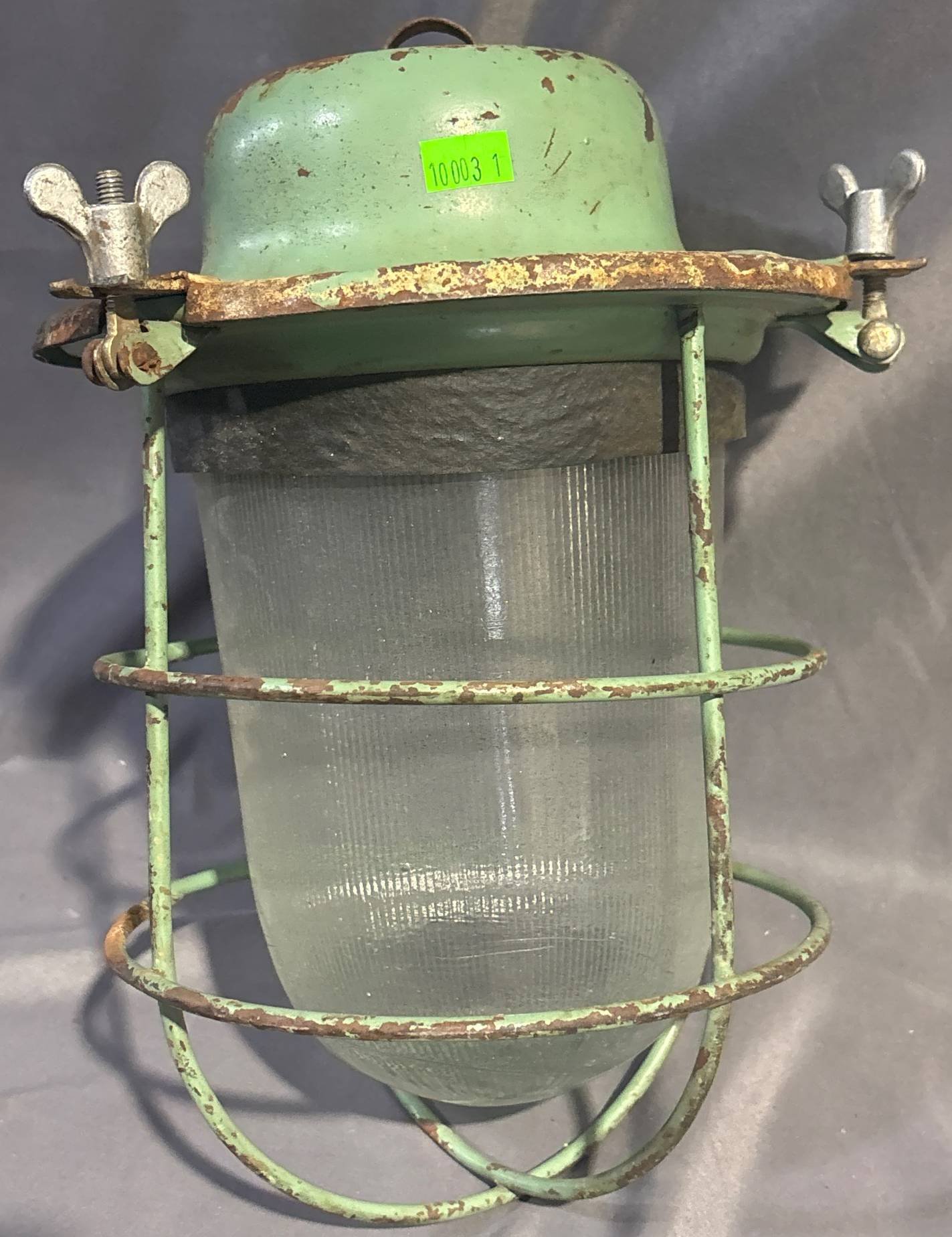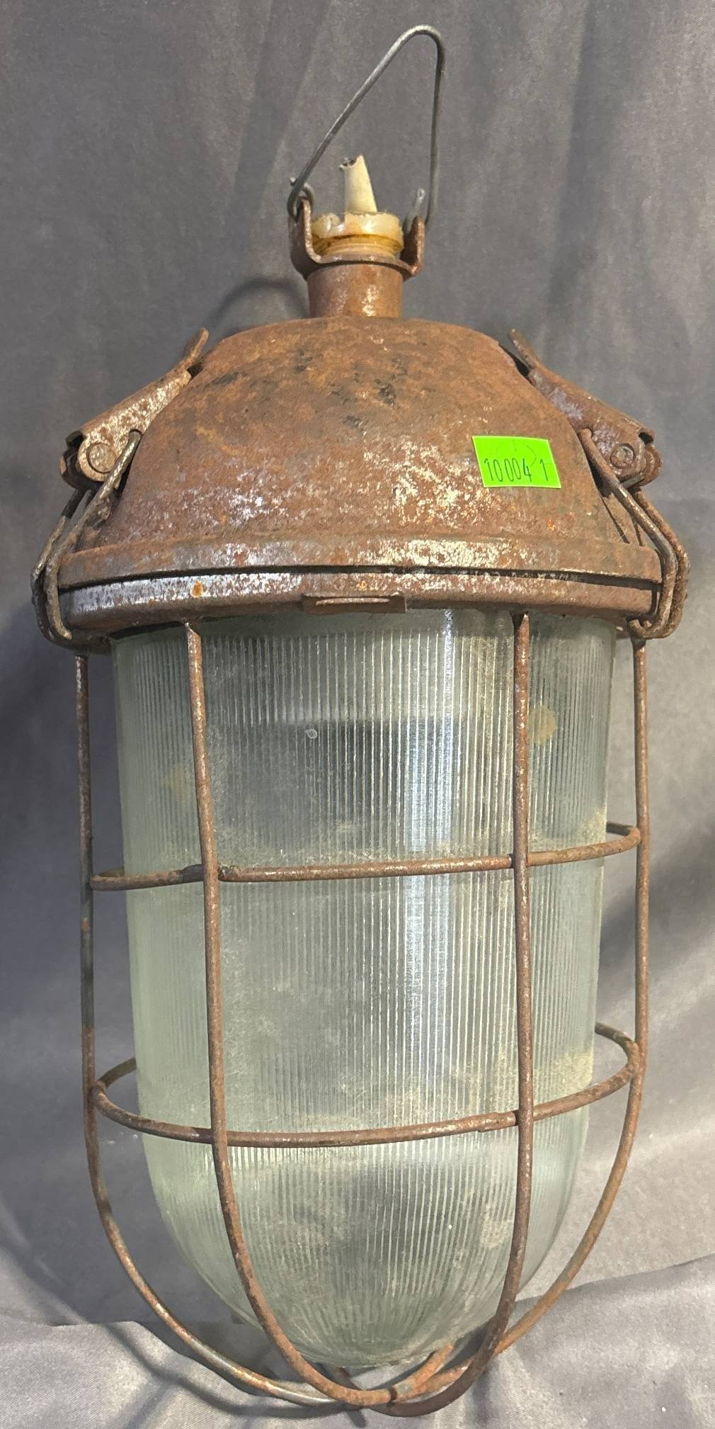 10003 Industrial Bunker Style Metal and Glass Cage Light Fixture, 11” Long