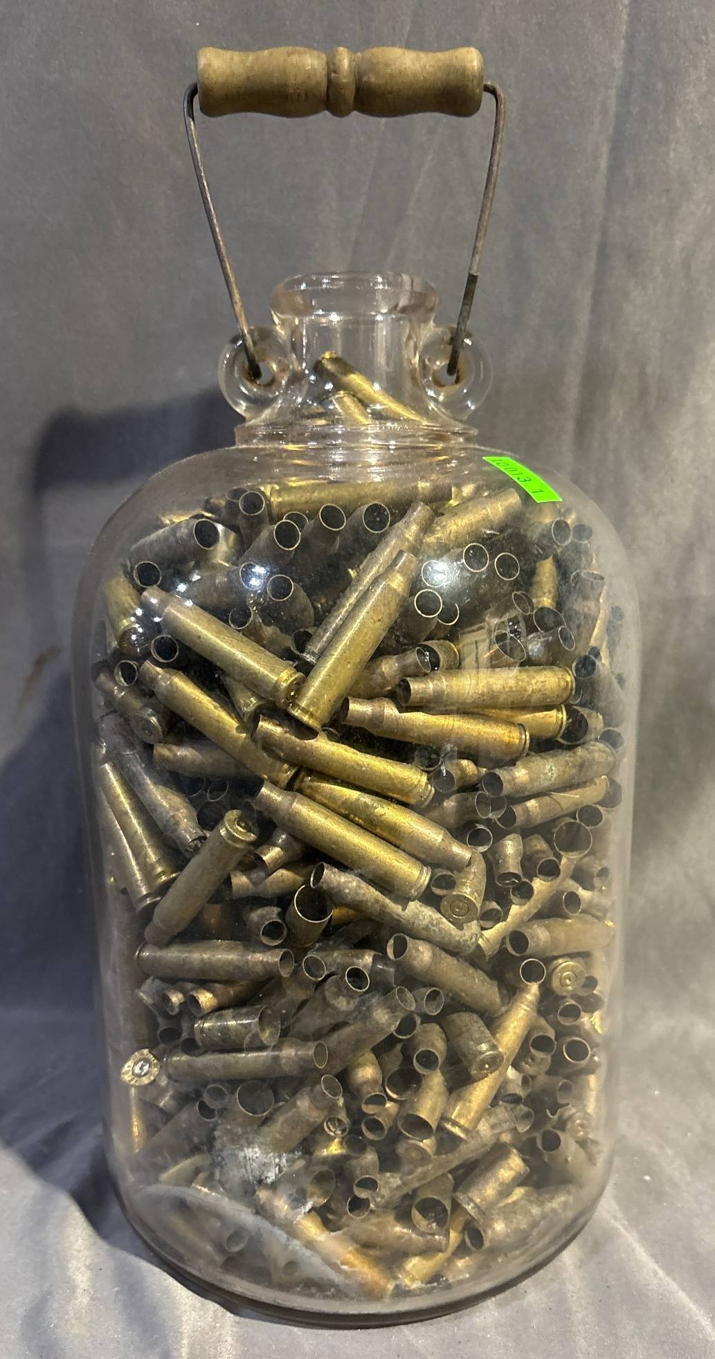 10013 Clear Glass Jug Filled With Brass Bullet Casings, 13?