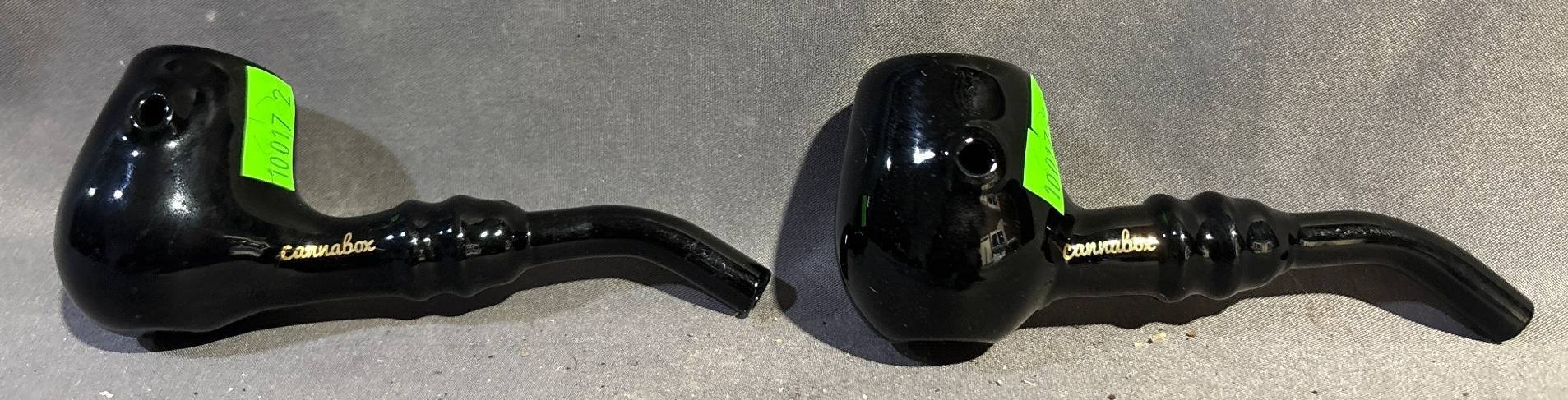 10017 2 Black Smoking Pipes, Marked ‘Cannabox’, 4.5” Long