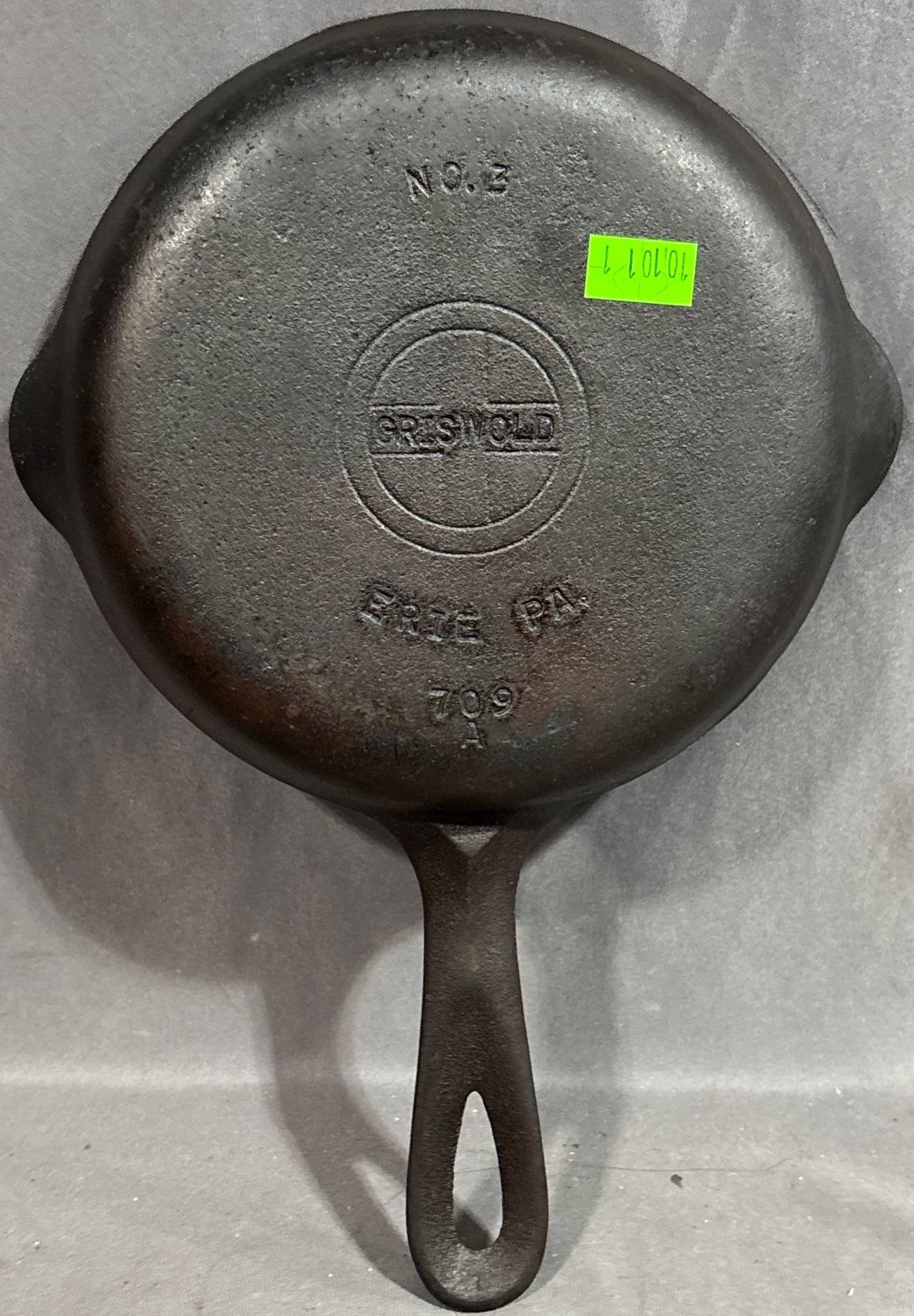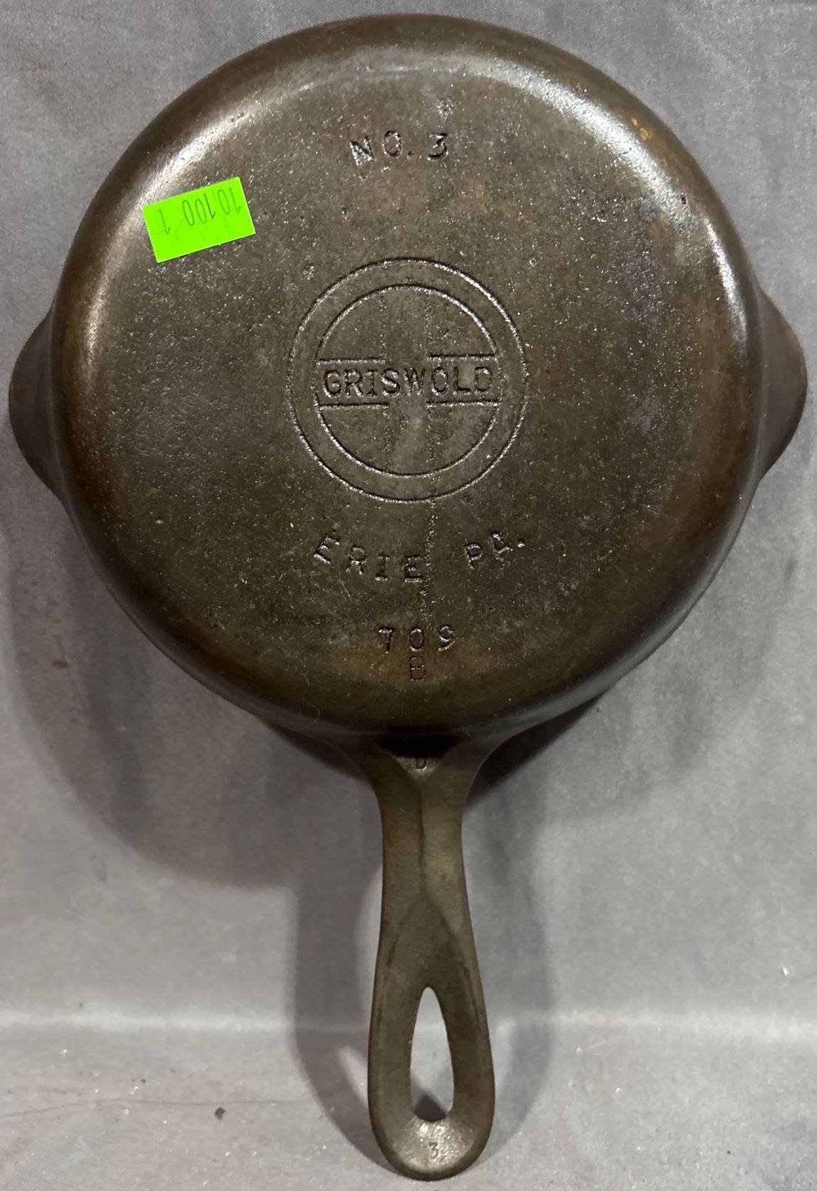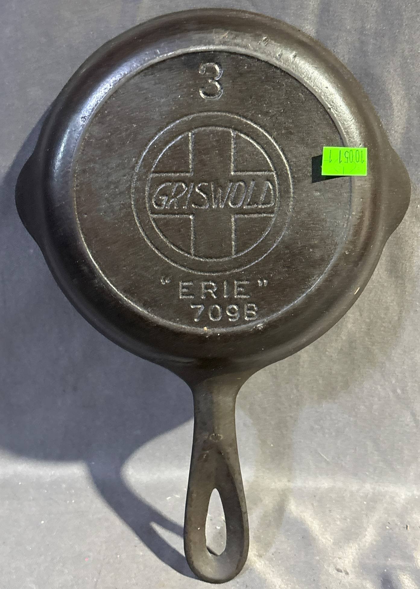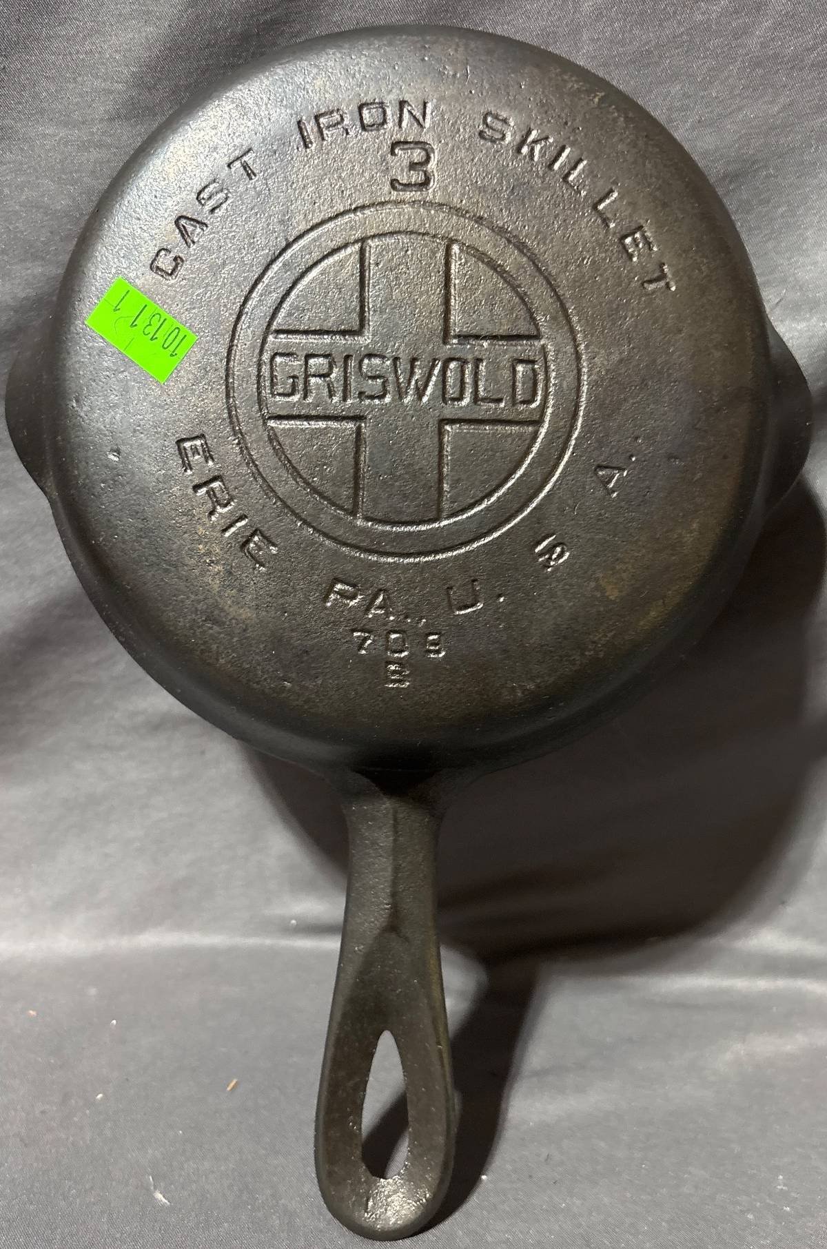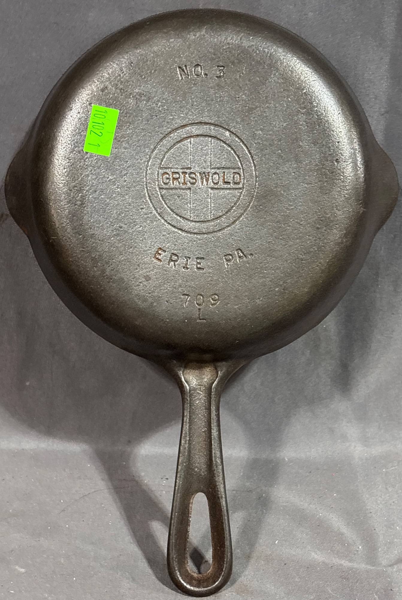 10051 Griswold No. 3 Cast Iron Skillet, Erie (some cracks) 709B