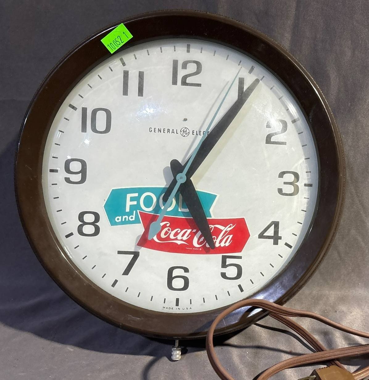10052 General Electric Wall Clock with Coca-Cola Advertising, 10.5” Diameter