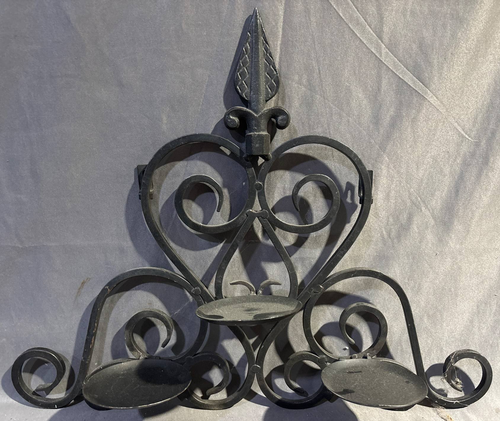 10054 Black Iron Scrollwork Wall-Mounted Candelabra, 20.5” Wide
