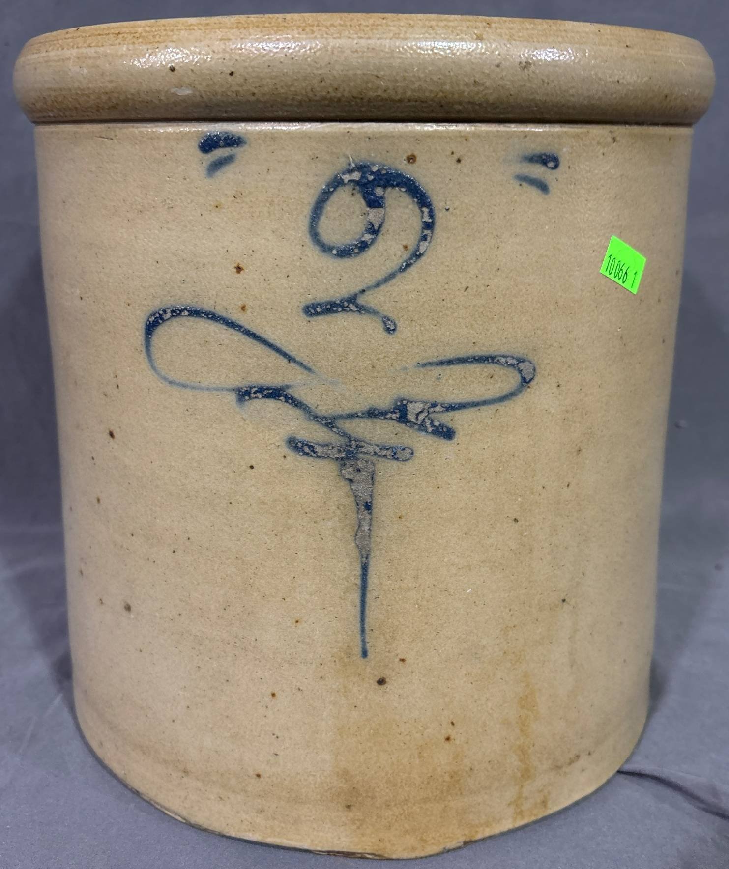 10066 NO. 2 Salt Glazed Bee Sting Stoneware Crock, 10? Tall, 9? Diameter